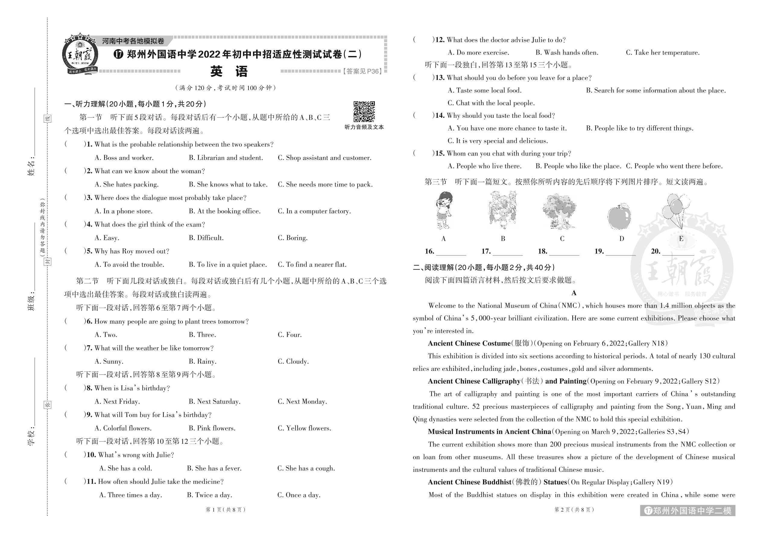 郑州外国语中学2022年初中中招适应性测试试卷(二)·英语【17】
