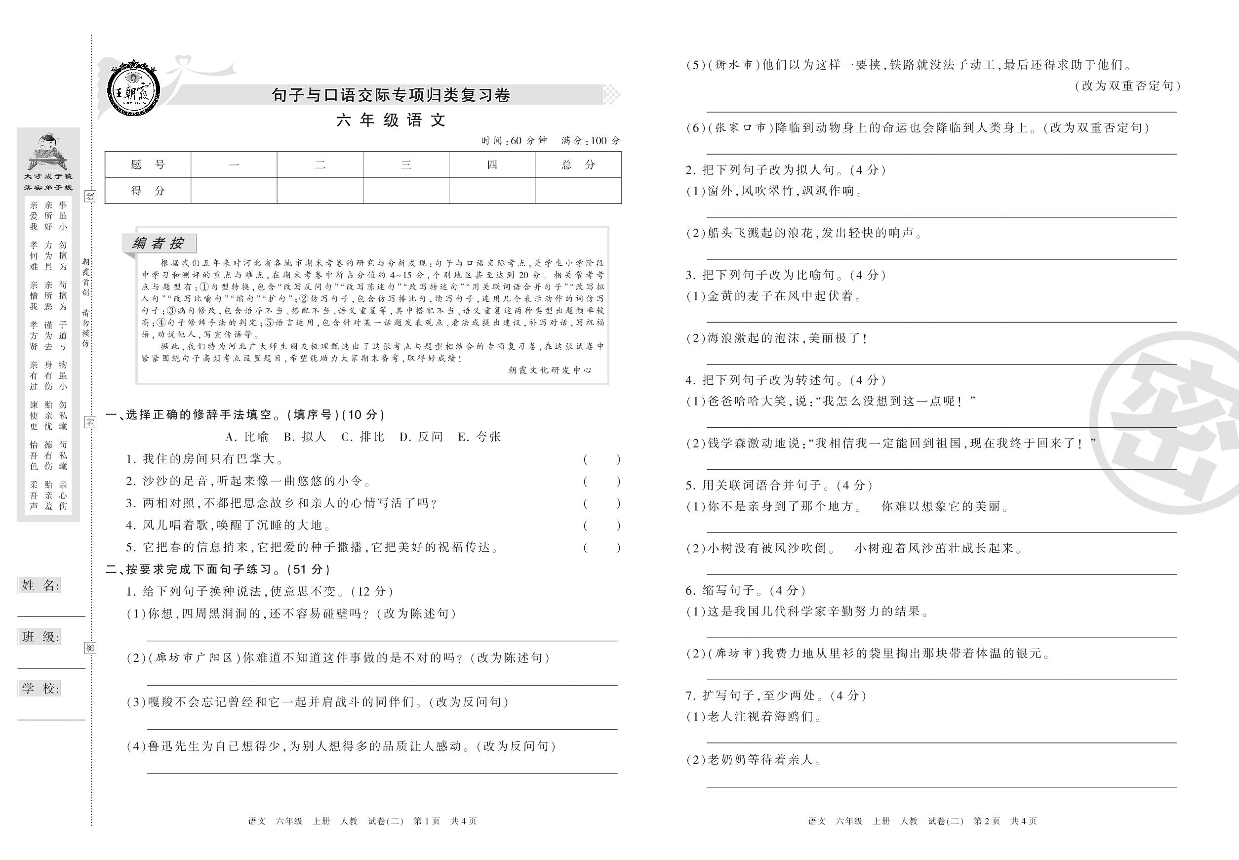 王朝霞期末专项卷六年级上册语文(人教版)_R21080294801【2】