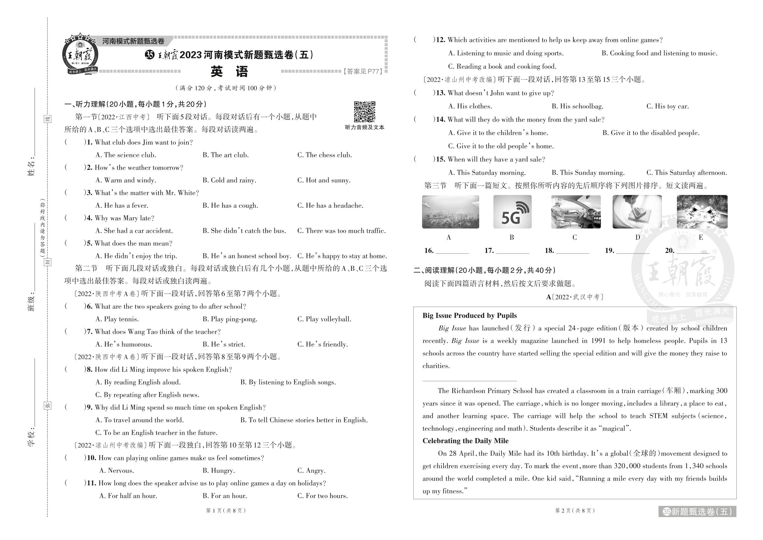 王朝霞2023河南模式新题甄选卷(五)·中考英语【35】