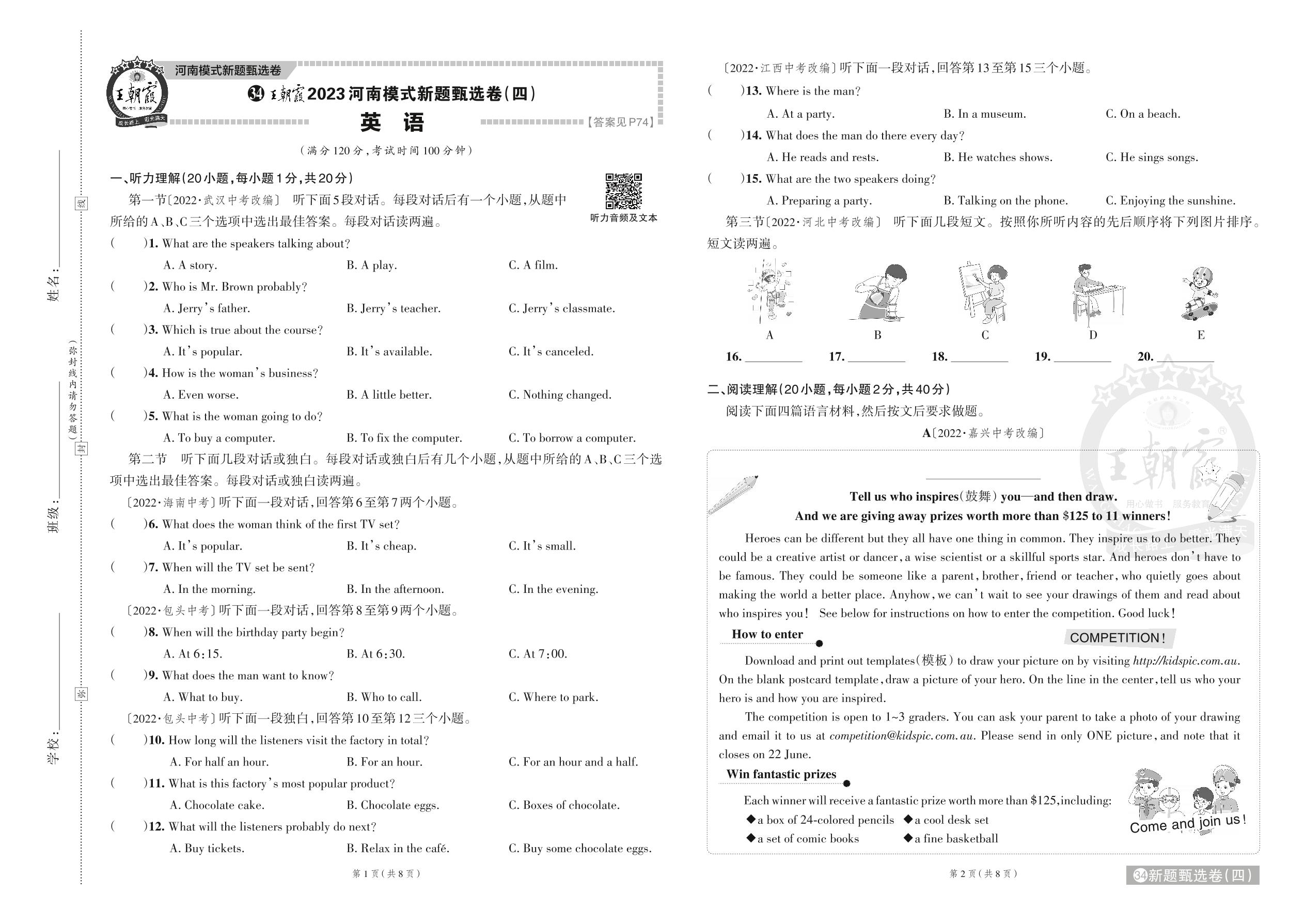 王朝霞2023河南模式新题甄选卷(四)·中考英语【34】