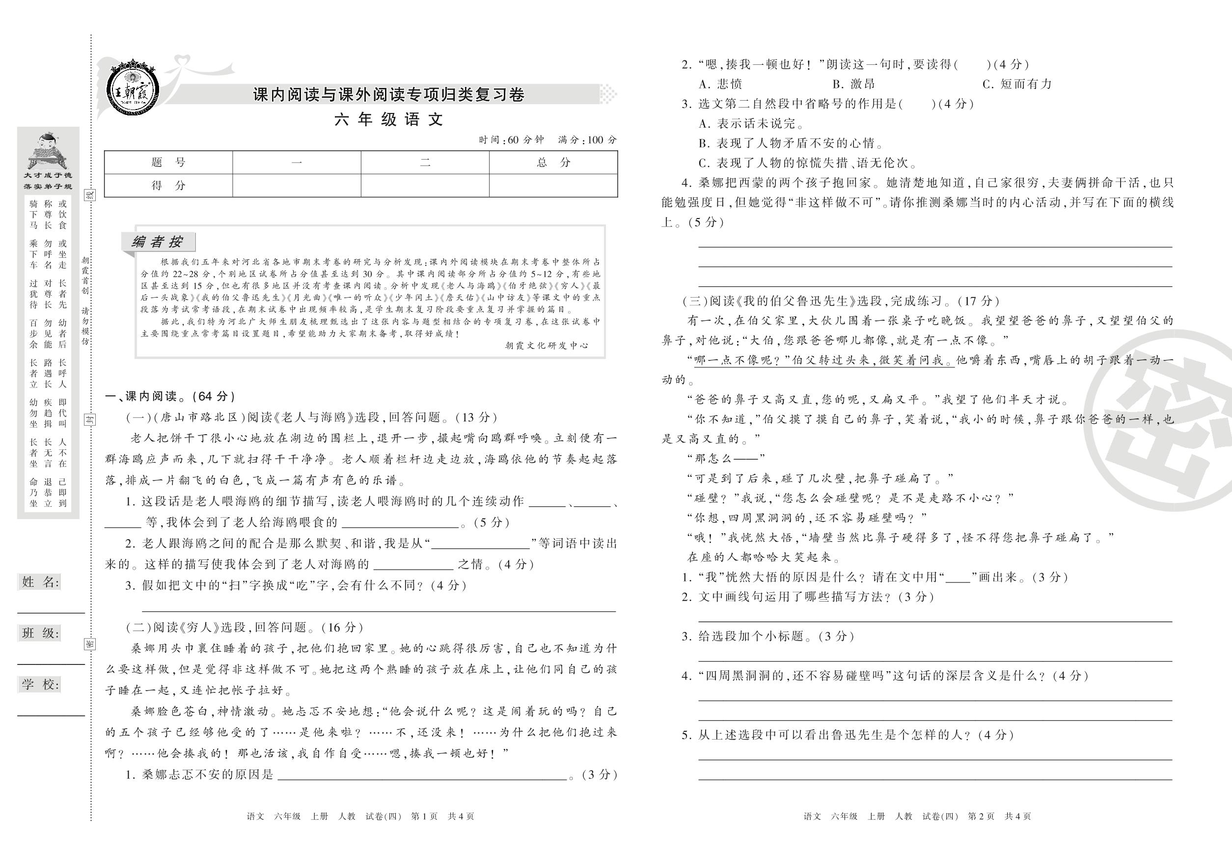 王朝霞期末专项卷六年级上册语文(人教版)_R21080294819【4】