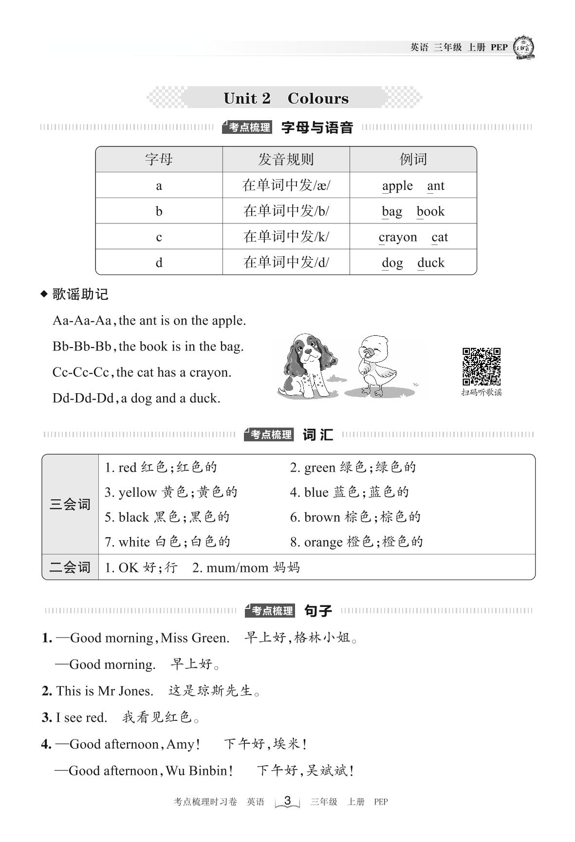 2022上册三年级英语人教PEP版 考点梳理手册——Unit 2 Colours