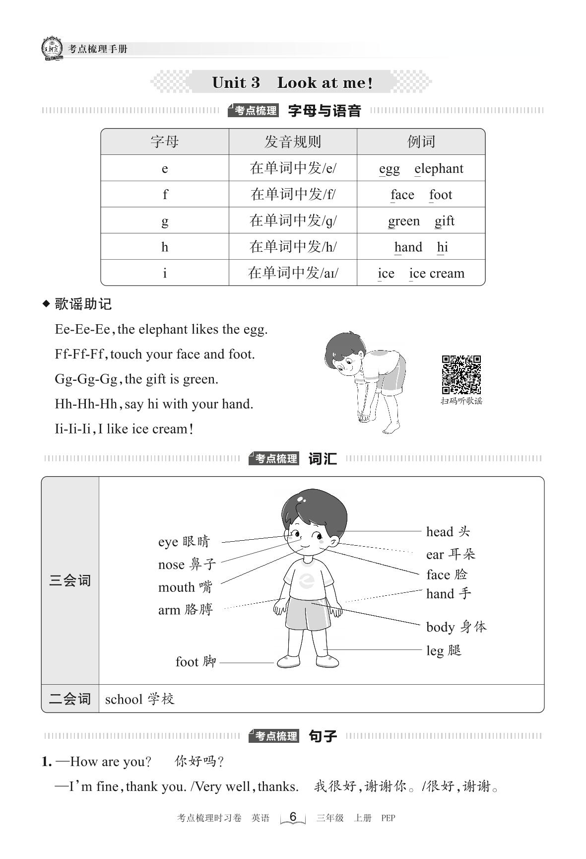 2022上册三年级英语人教PEP版 考点梳理手册——Unit 3 Look at me!