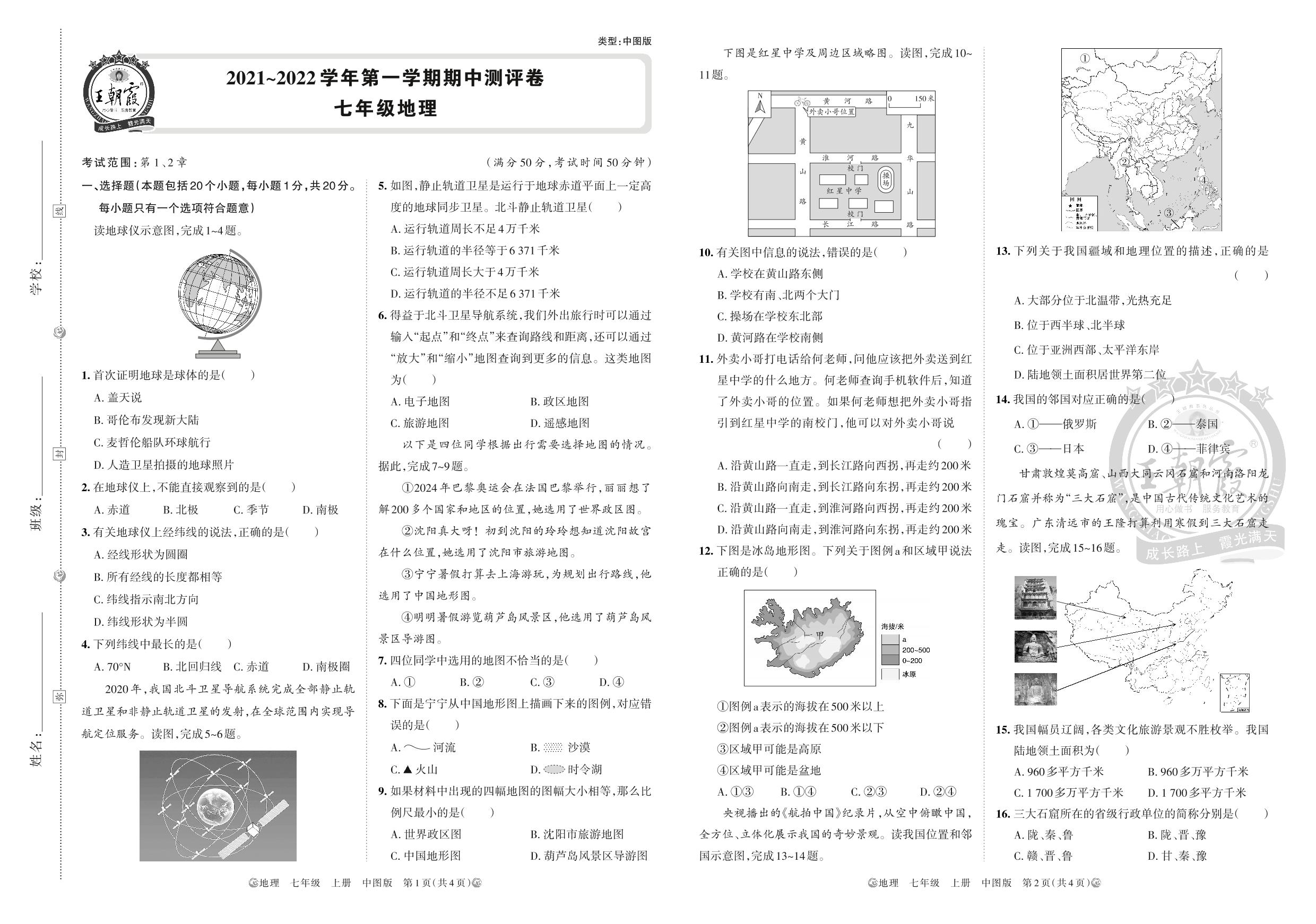2021上册七年级地理中图版 期中测评卷
