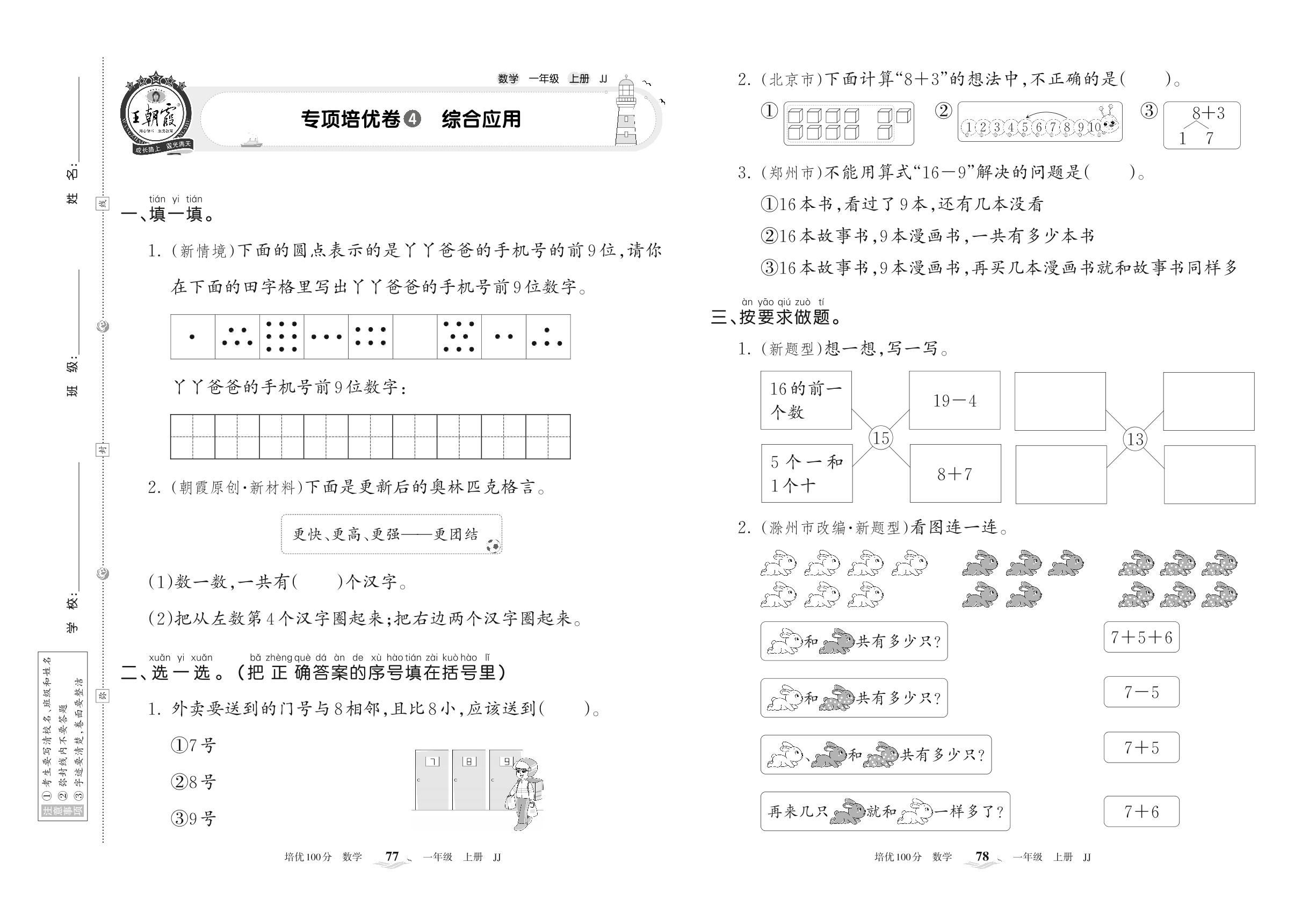 2022上册一年级数学冀教版 专项培优卷4 综合应用