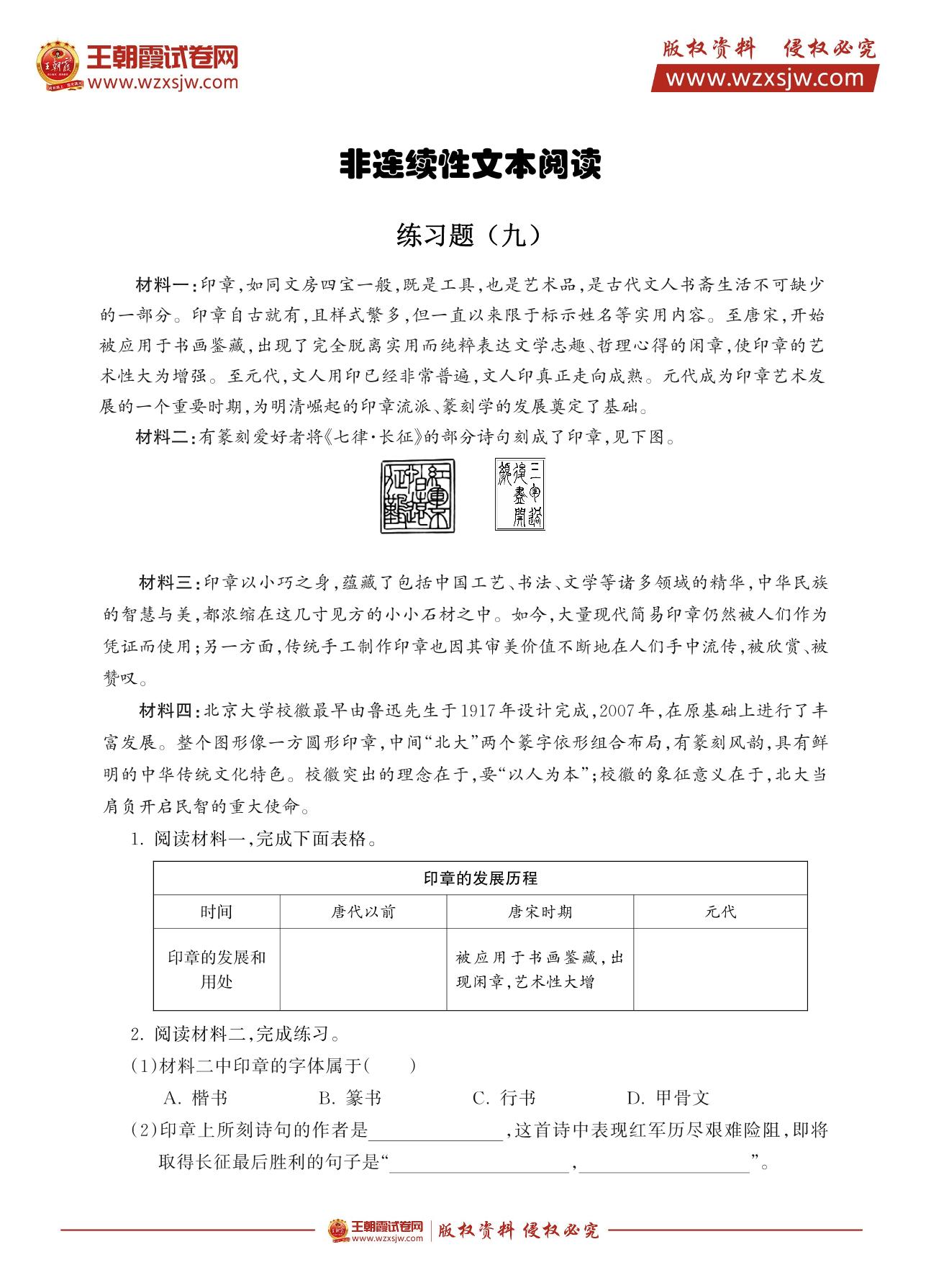 人教版六年级上册·非连续性文本阅读练习题9