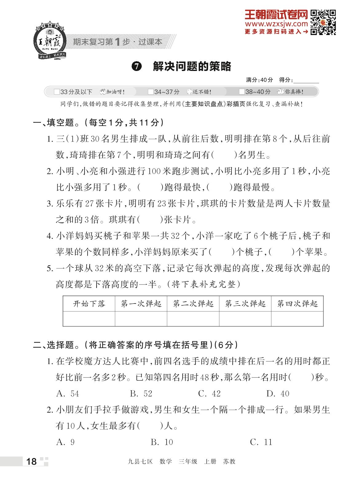 王朝霞期末过课本——7 解决问题的策略三年级上册数学(苏教版)