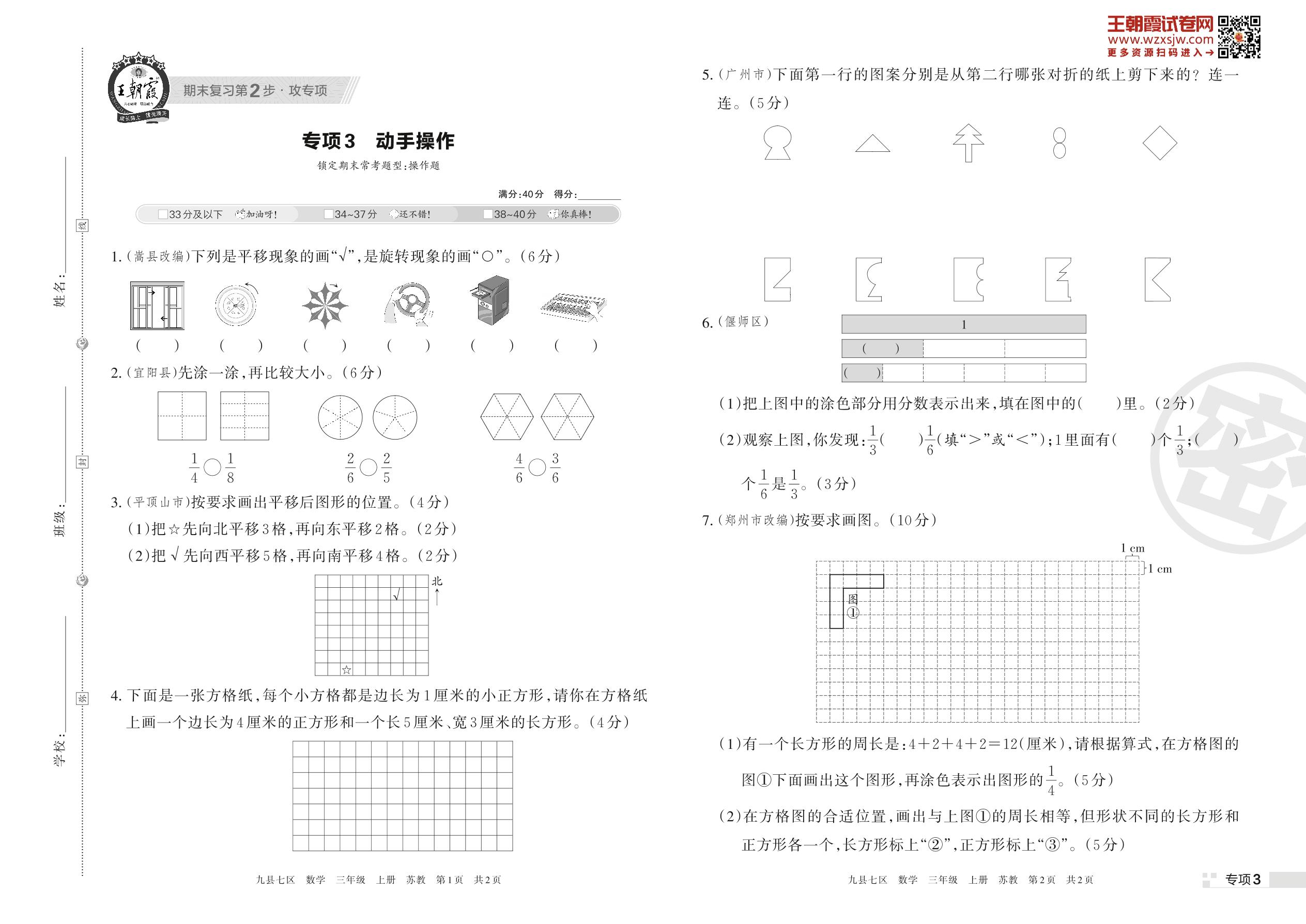 王朝霞期末专项卷——动手操作三年级上册数学(苏教版)【3】
