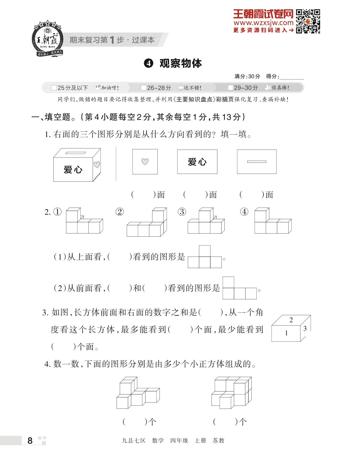 王朝霞期末过课本——4 观察物体四年级上册数学(苏教版)