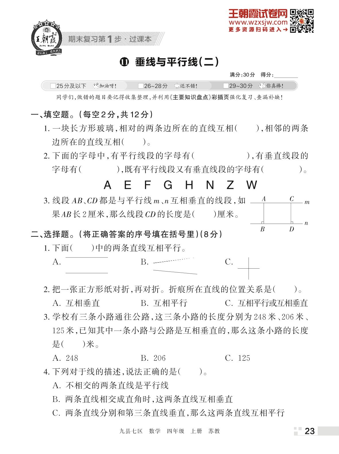 王朝霞期末过课本——11 垂直与平行线(二)四年级上册数学(苏教版)