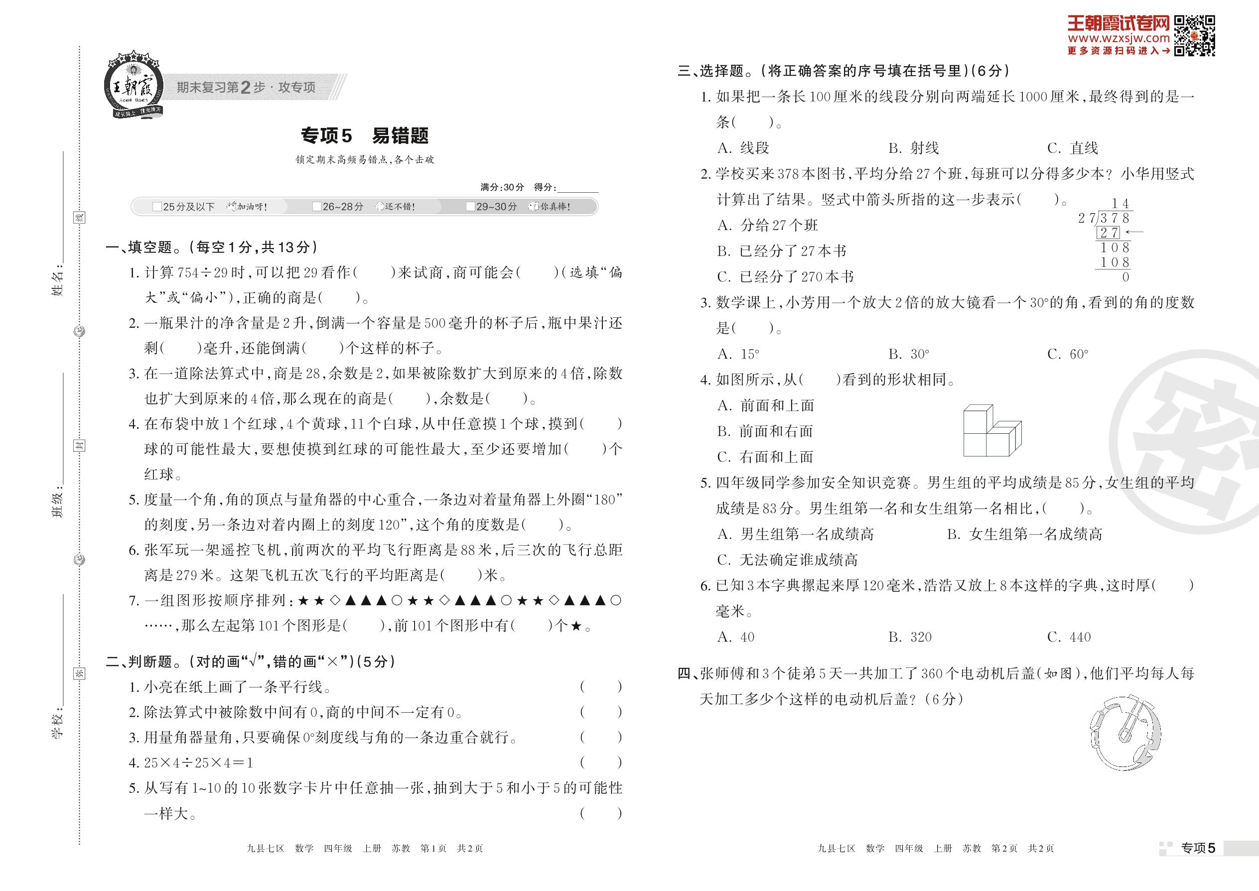 王朝霞期末专项卷——易错题四年级上册数学(苏教版)【5】