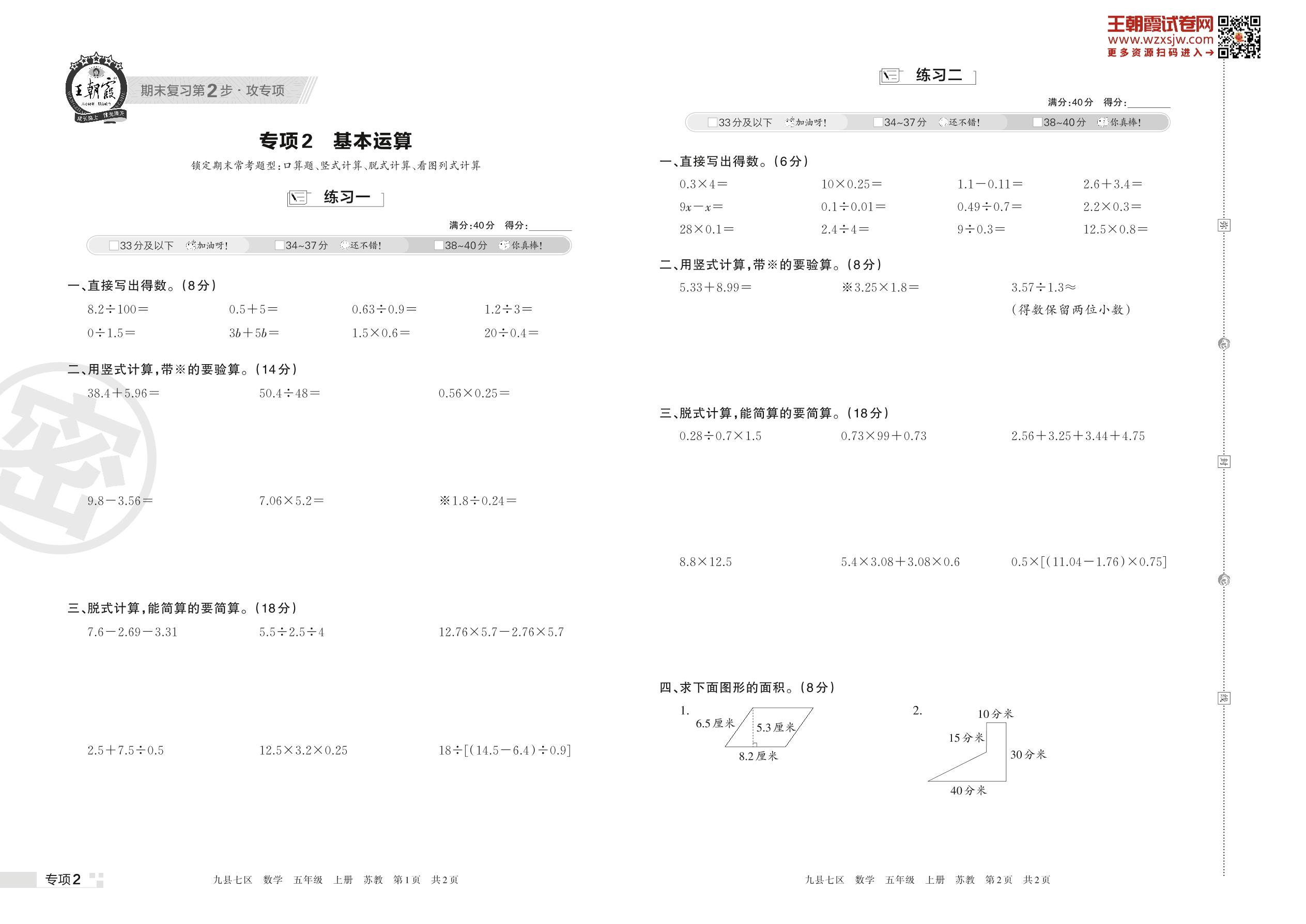 王朝霞期末专项卷——基本运算五年级上册数学(苏教版)【2】