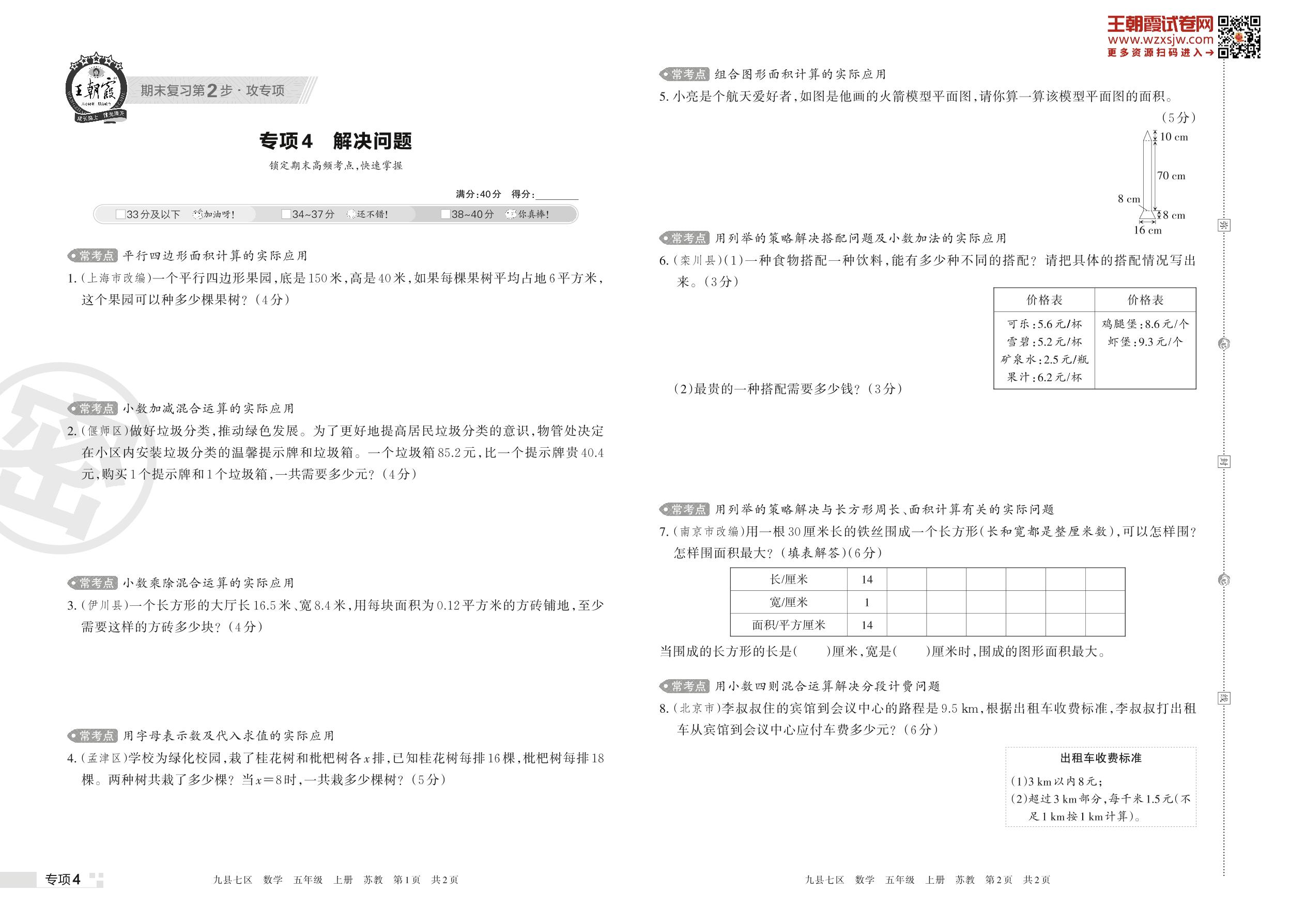 王朝霞期末专项卷——解决问题五年级上册数学(苏教版)【4】