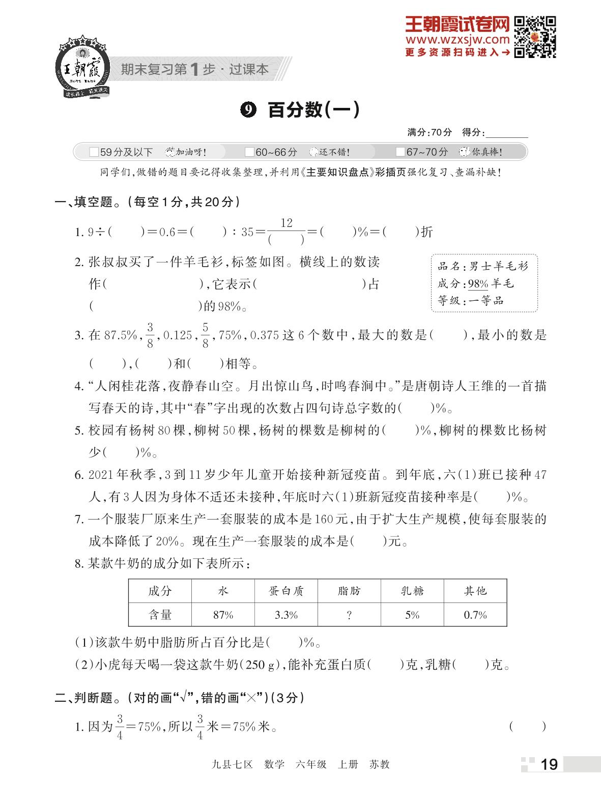 王朝霞期末过课本——9 百分数(一)六年级上册数学(苏教版)