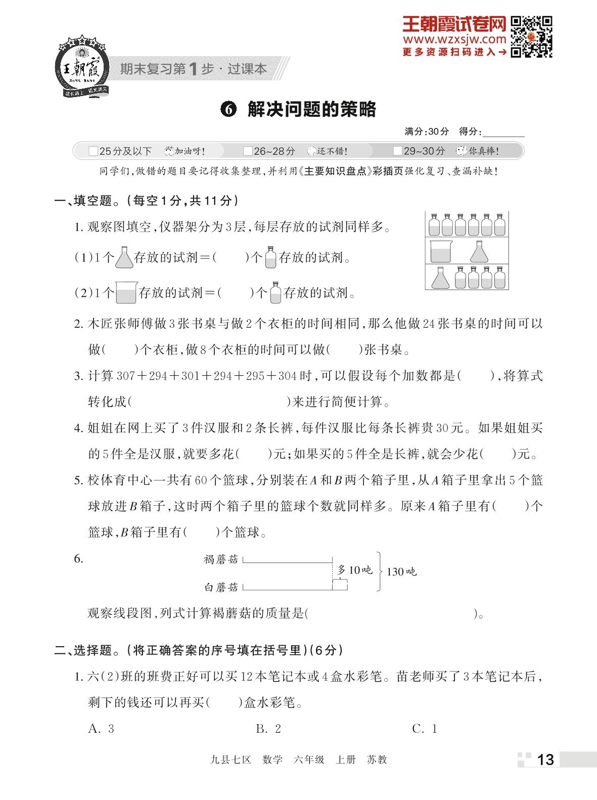 王朝霞期末过课本——6 解决问题的策略六年级上册数学(苏教版)