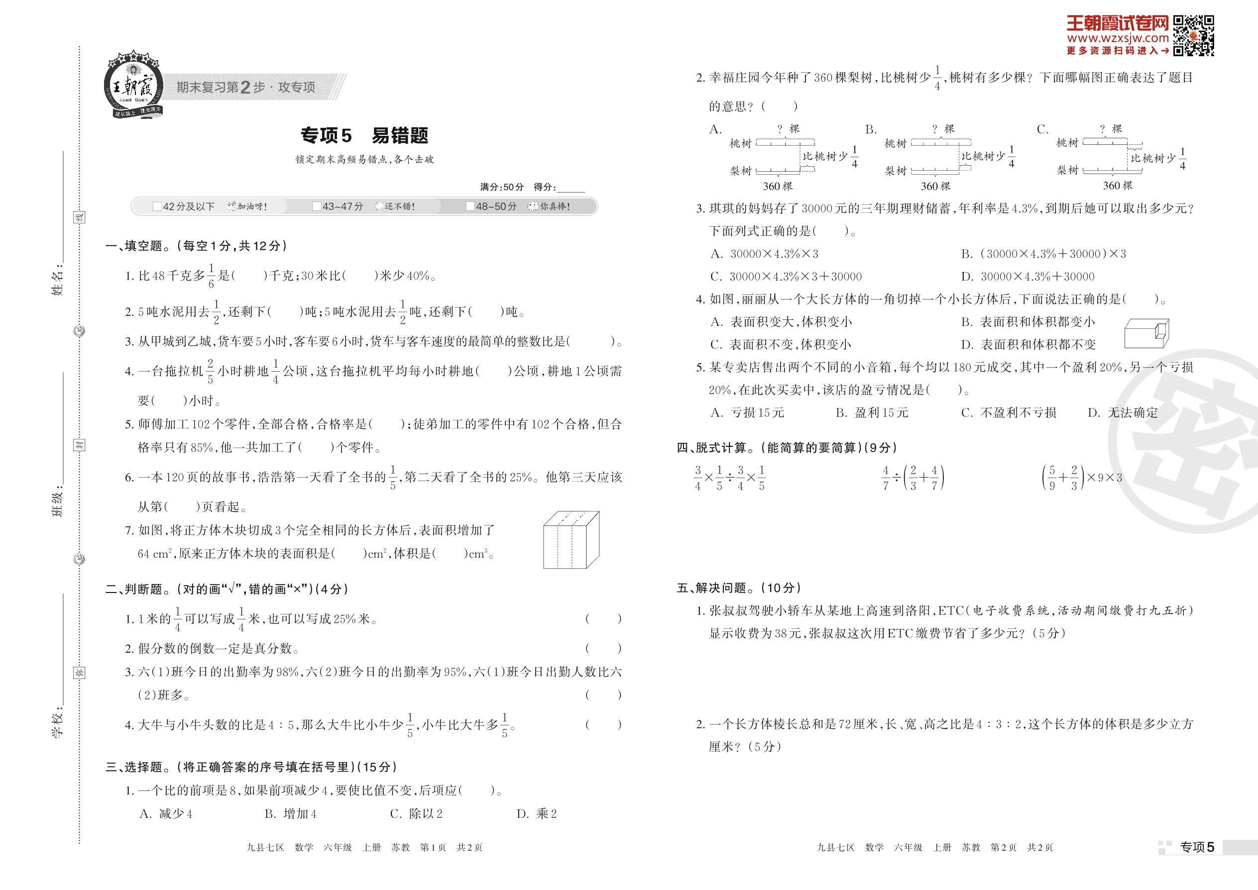 王朝霞期末专项卷——易错题六年级上册数学(苏教版)【5】