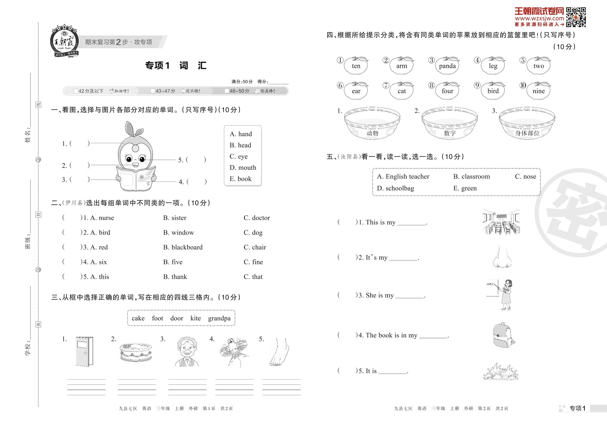 王朝霞期末专项卷——词汇三年级上册英语(外研版)【1】