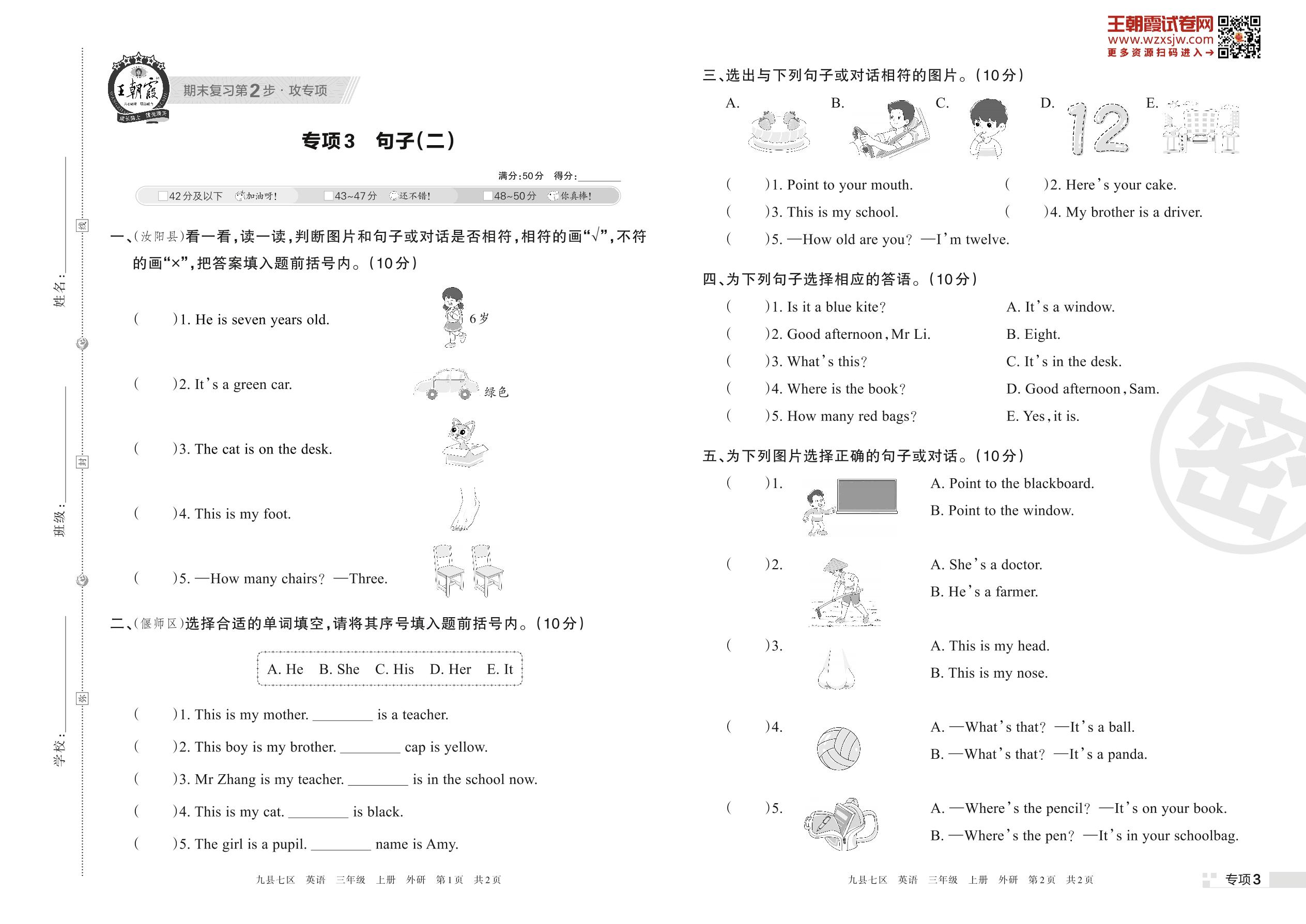 王朝霞期末专项卷——句子(二)三年级上册英语(外研版)【3】