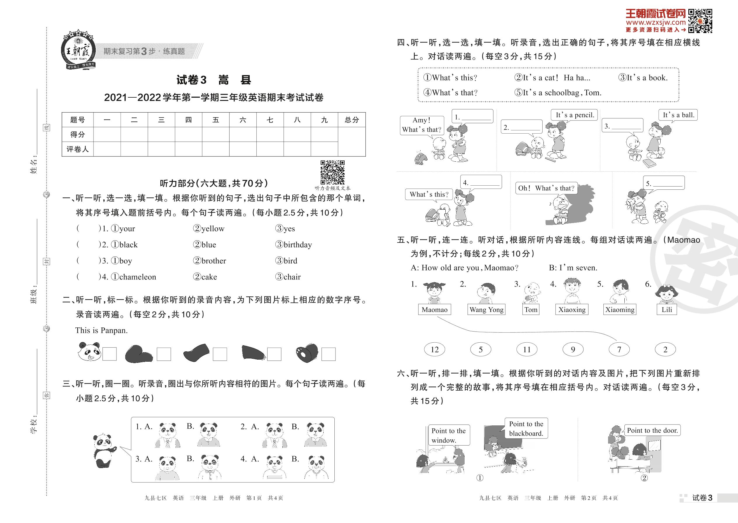 嵩县2021—2022学年第一学期三年级英语期末考试试卷(外研版)【3】