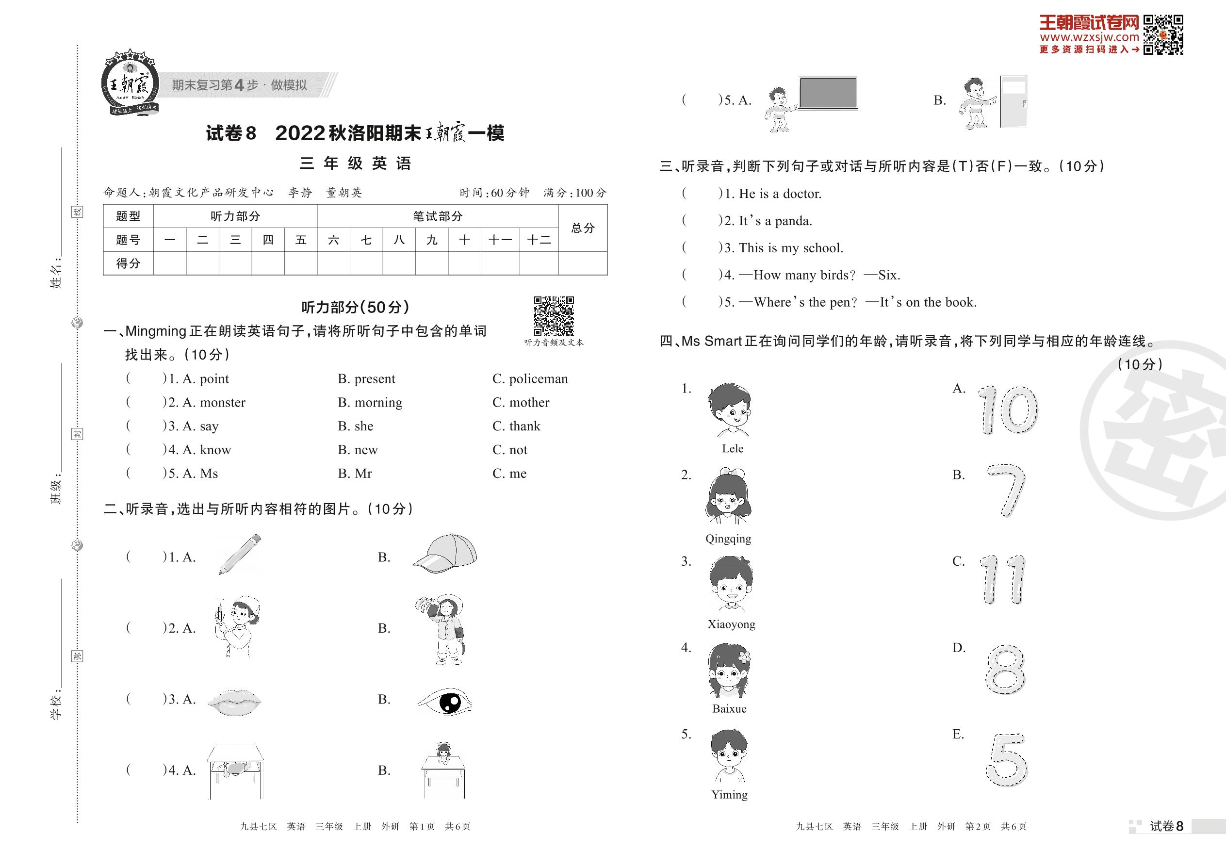 王朝霞期末模拟卷三年级上册英语(外研版)_R221111094215469【8】