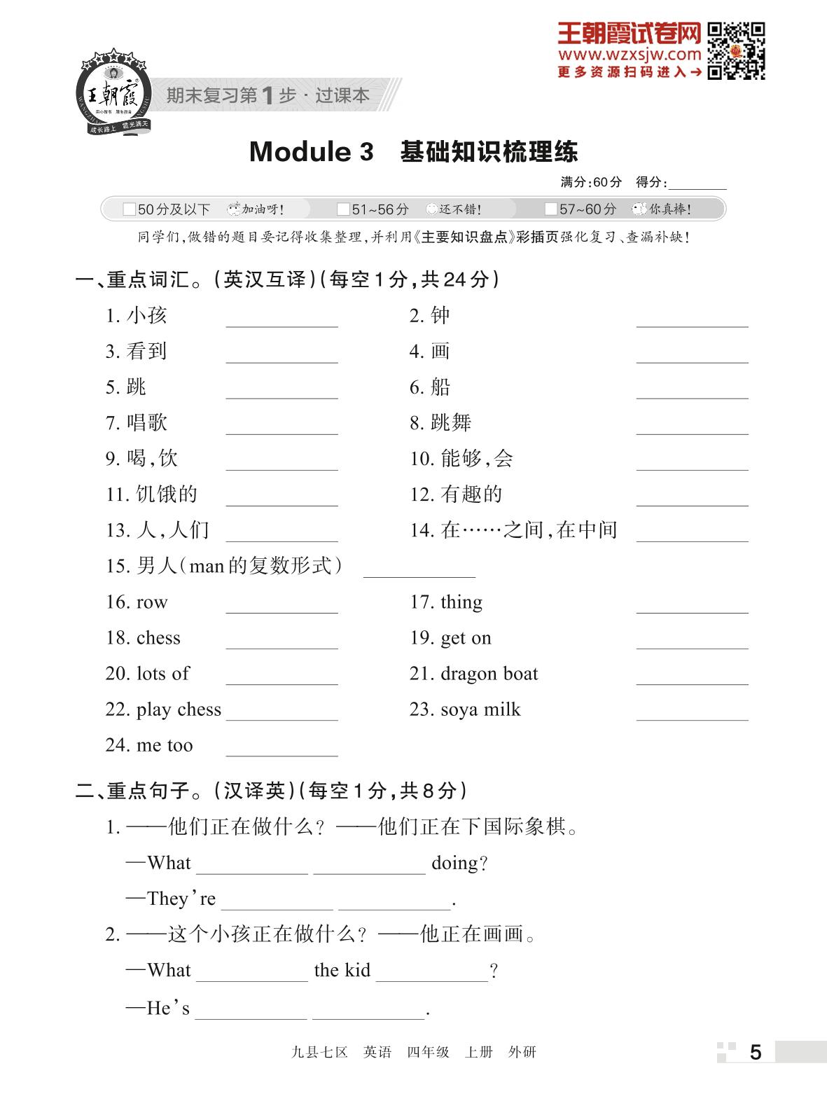 王朝霞期末过课本——Module 3 基础知识梳理练四年级上册英语(外研版)