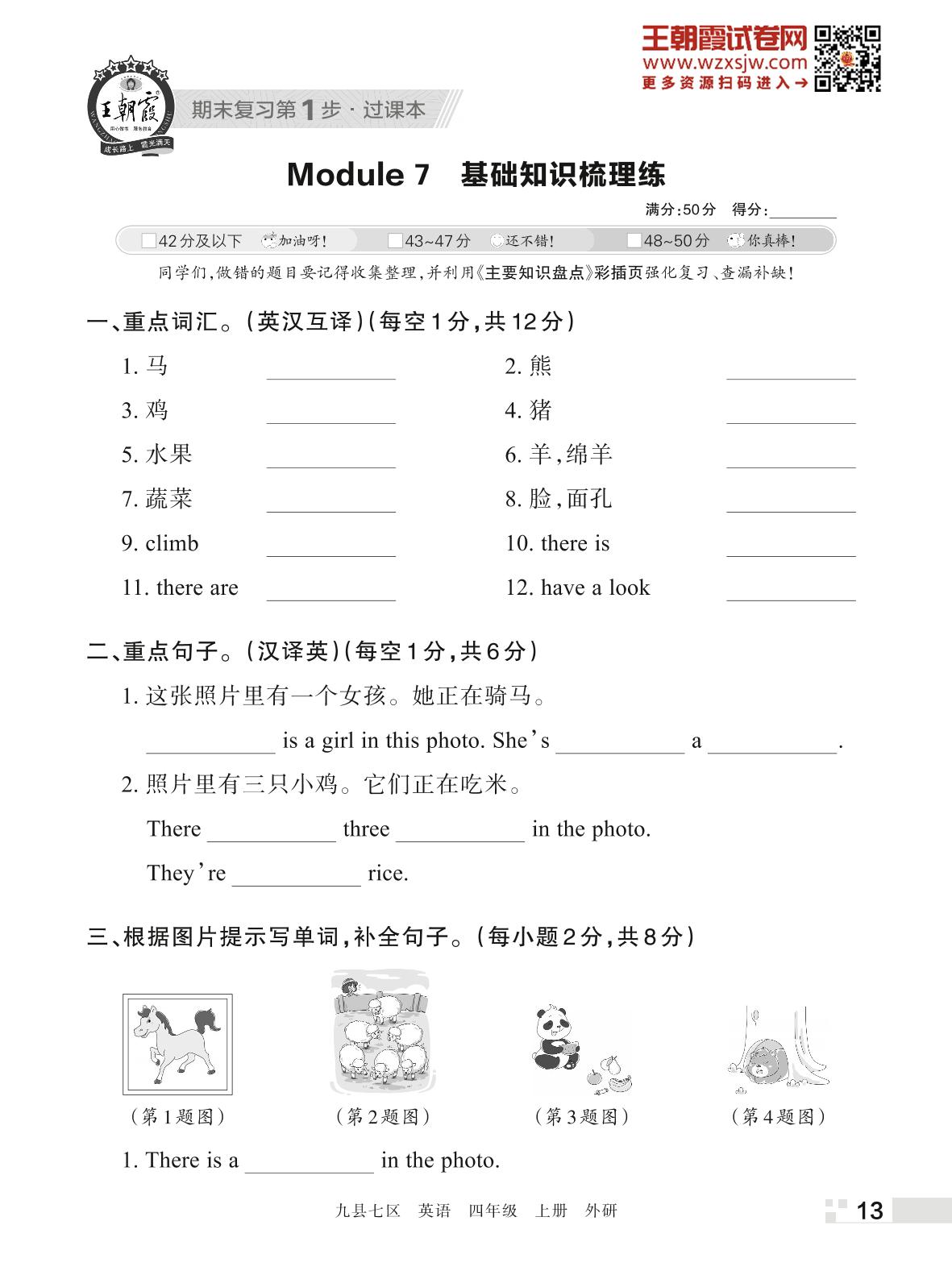王朝霞期末过课本——Module 7 基础知识梳理练四年级上册英语(外研版)
