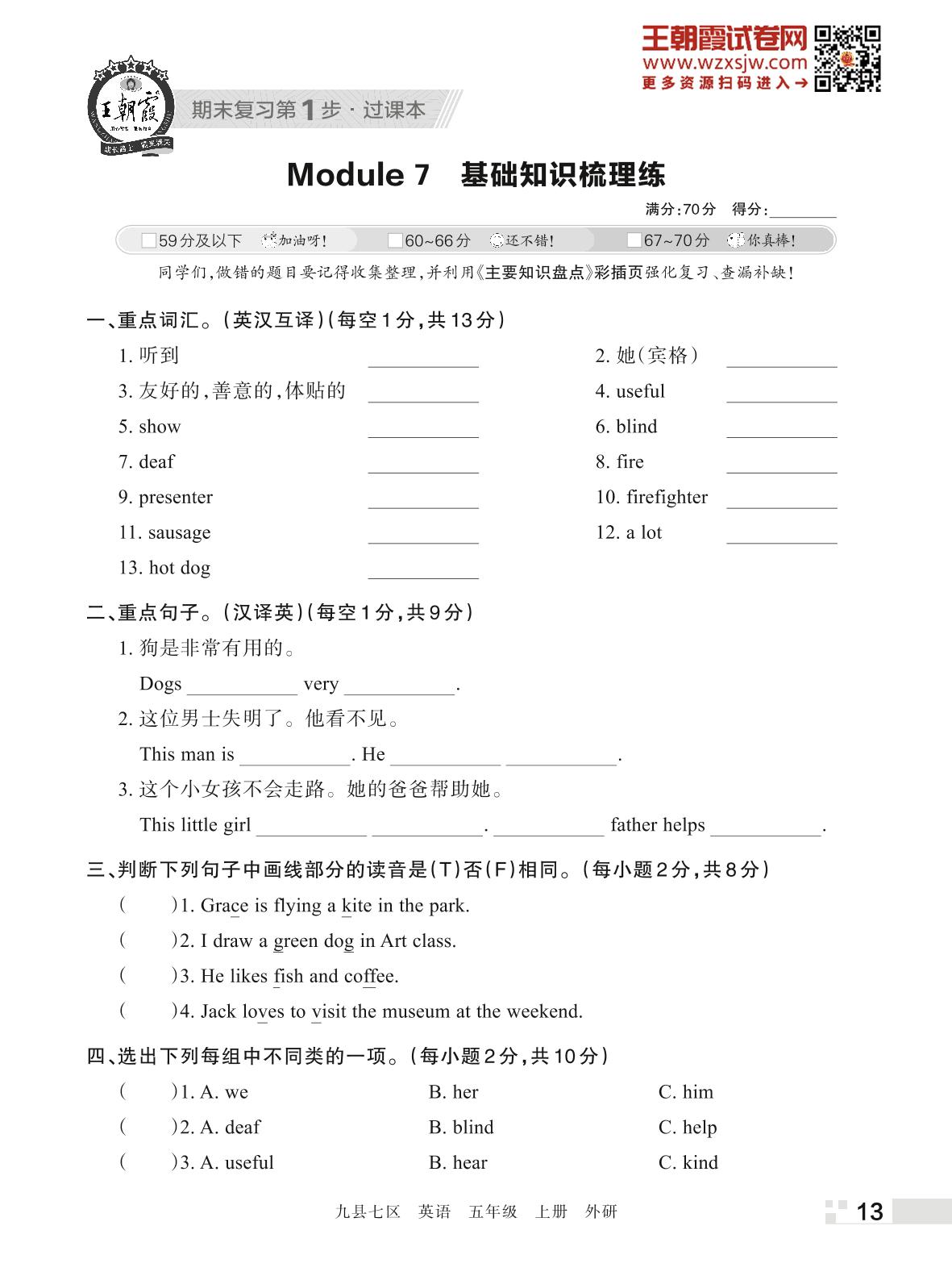 王朝霞期末过课本——Module 7 基础知识梳理练五年级上册英语(外研版)