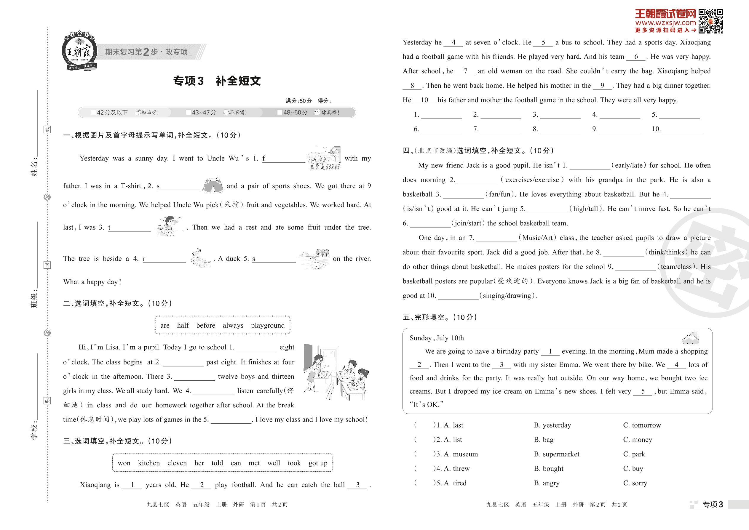 王朝霞期末专项卷——情景交际五年级上册英语(外研版)【2】