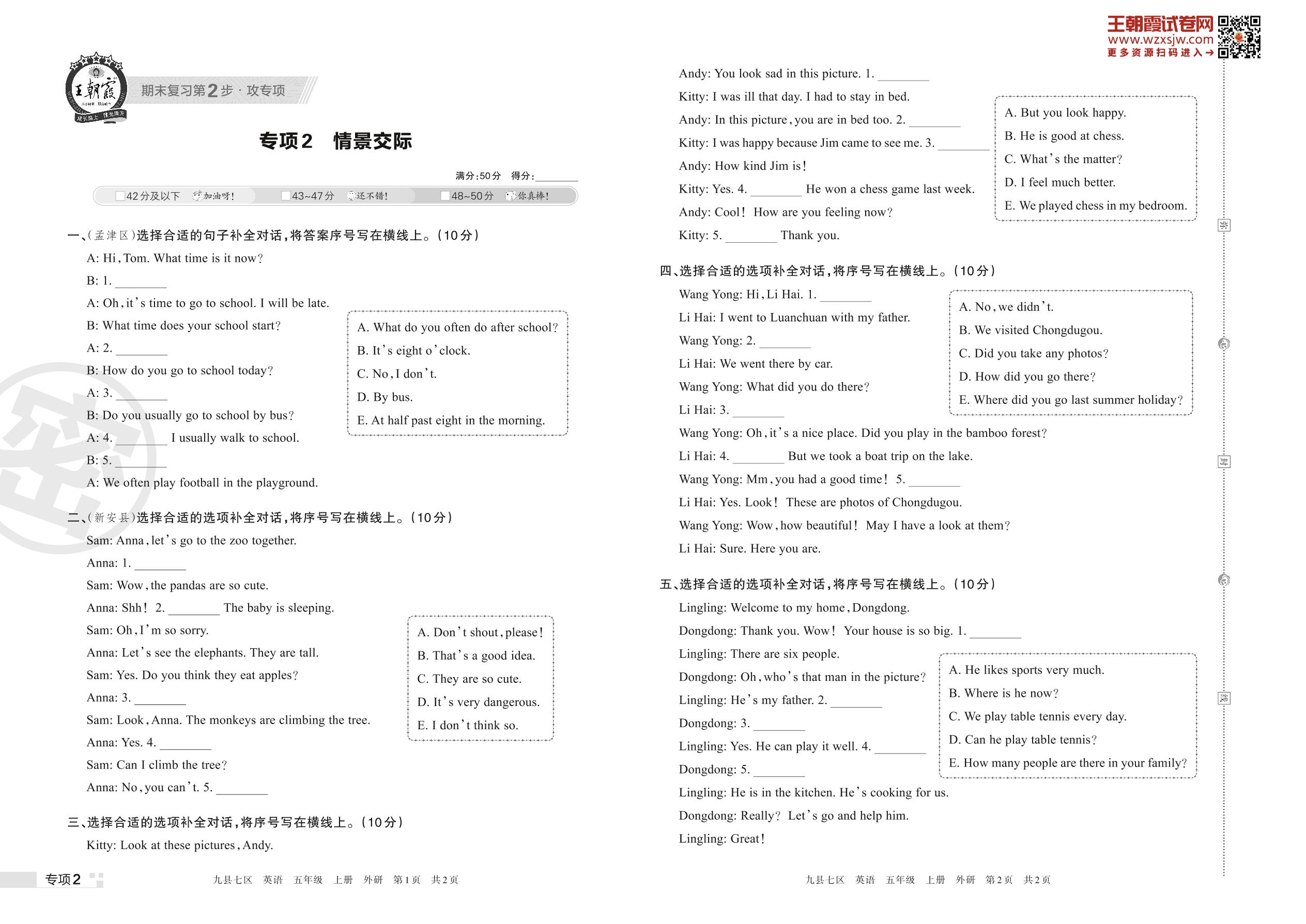王朝霞期末专项卷——词汇与句子五年级上册英语(外研版)【1】