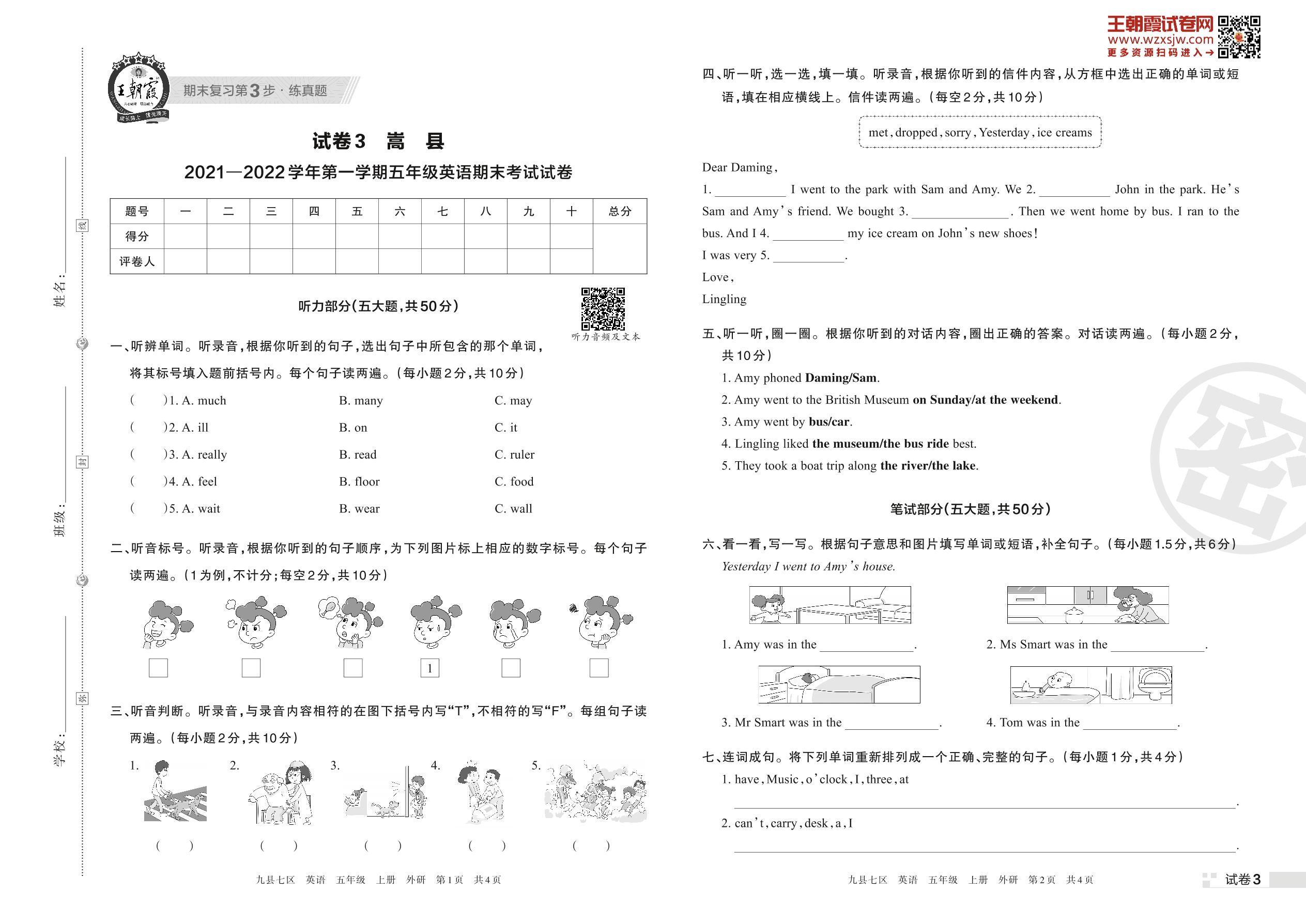 伊川县2021—2022学年第一学期五年级英语期末质量调研检测试卷(外研版)【2】