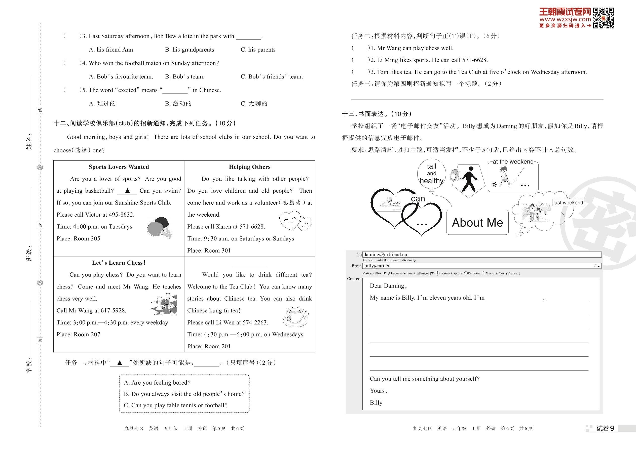 王朝霞期末模拟卷五年级上册英语(外研版)_R221111095948877【9】