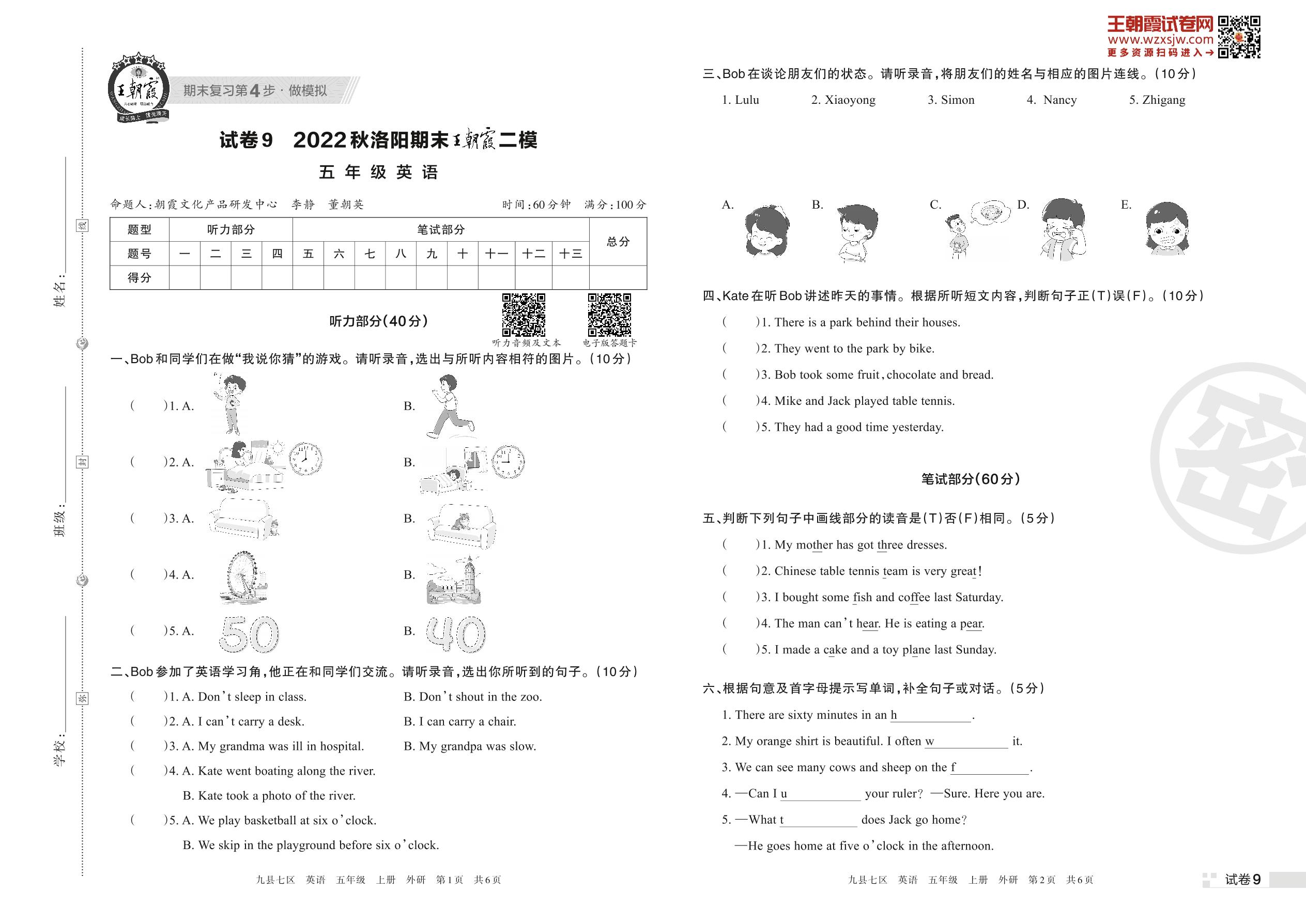 王朝霞期末模拟卷五年级上册英语(外研版)_R221111095948735【8】