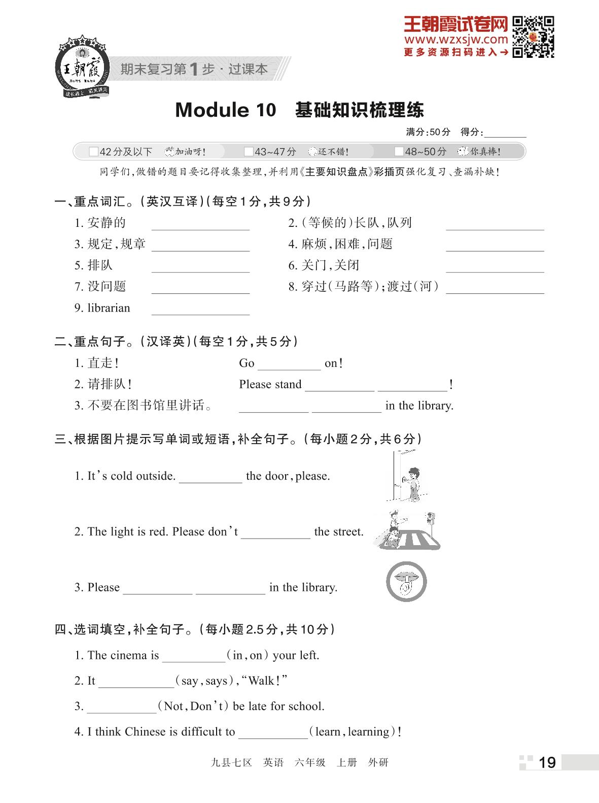 王朝霞期末过课本——Module 10 基础知识梳理练六年级上册英语(外研版)