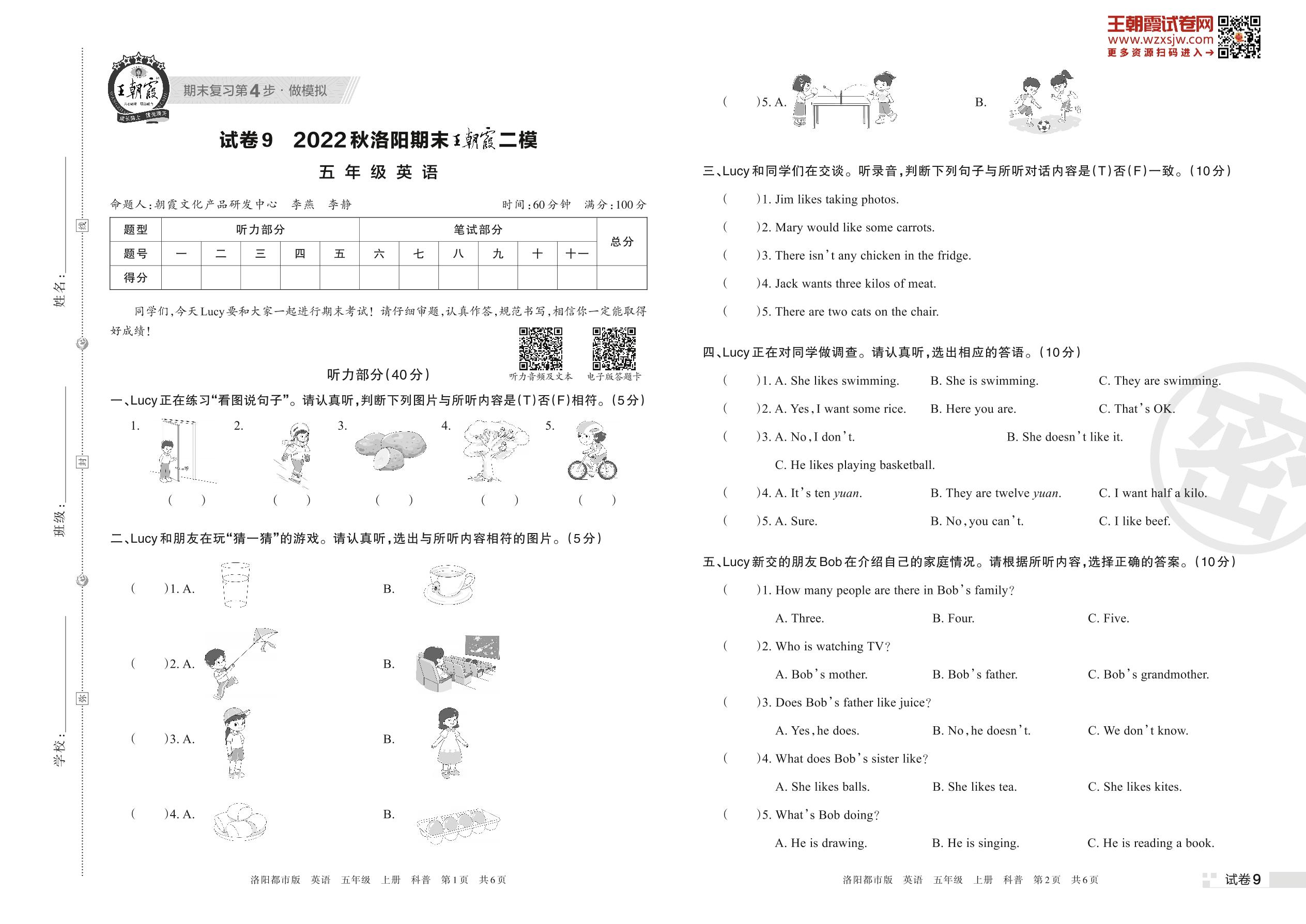 王朝霞期末模拟卷五年级上册英语(科普版)_R221111105619066【9】