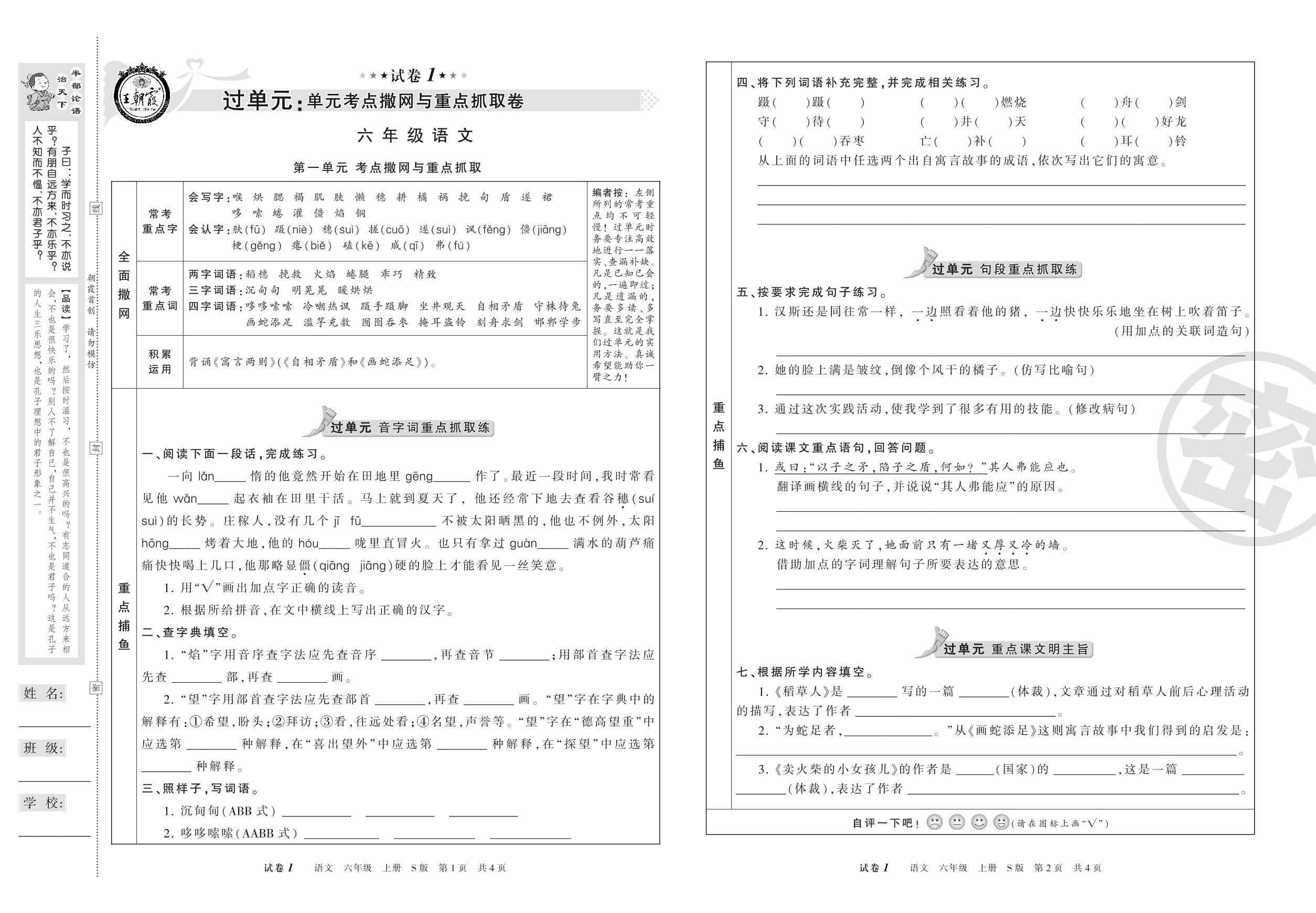 王朝霞期末专项卷六年级上册语文(S版)_R210802102811【1】