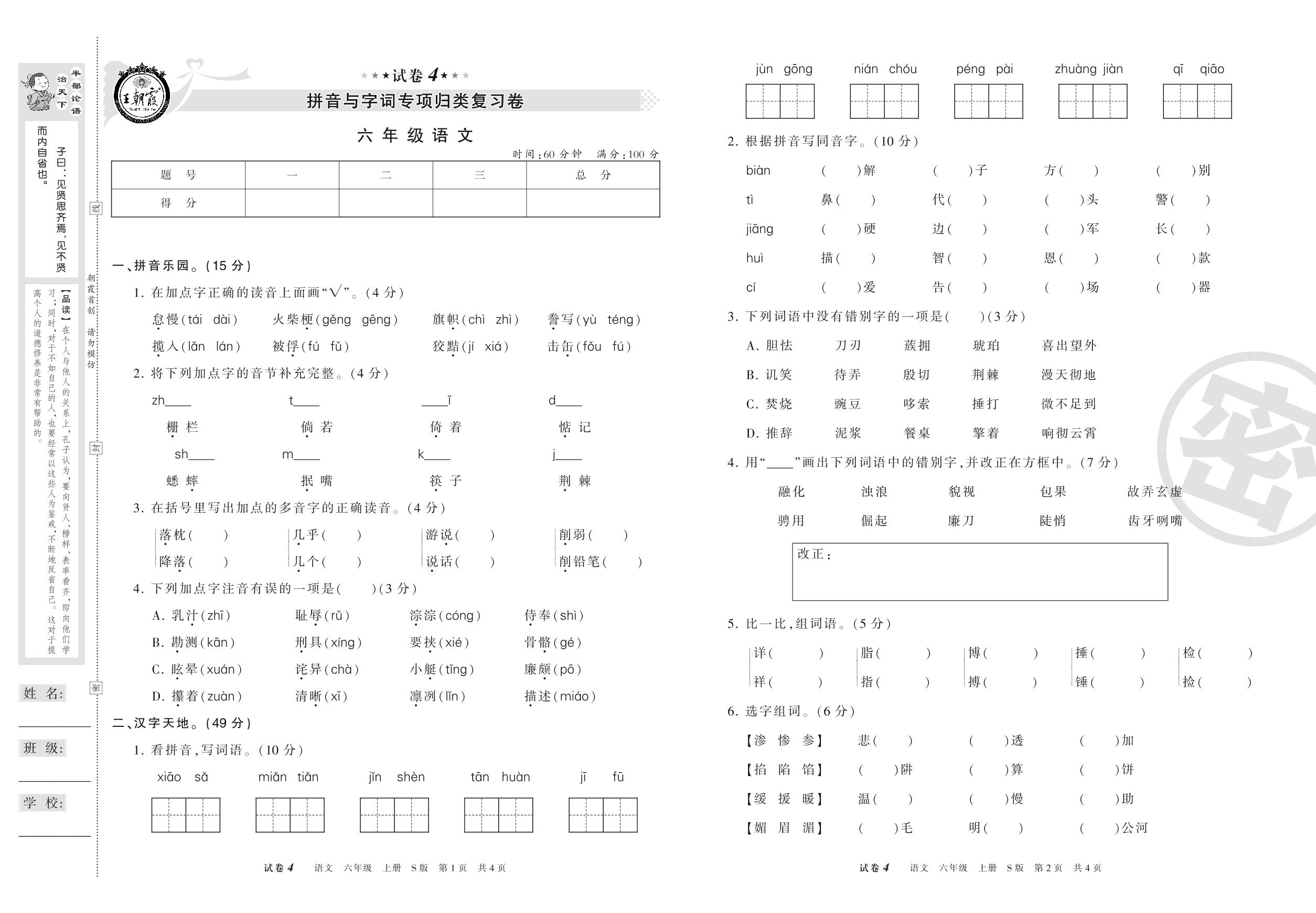 王朝霞期末专项卷六年级上册语文(S版)_R210802102838【4】