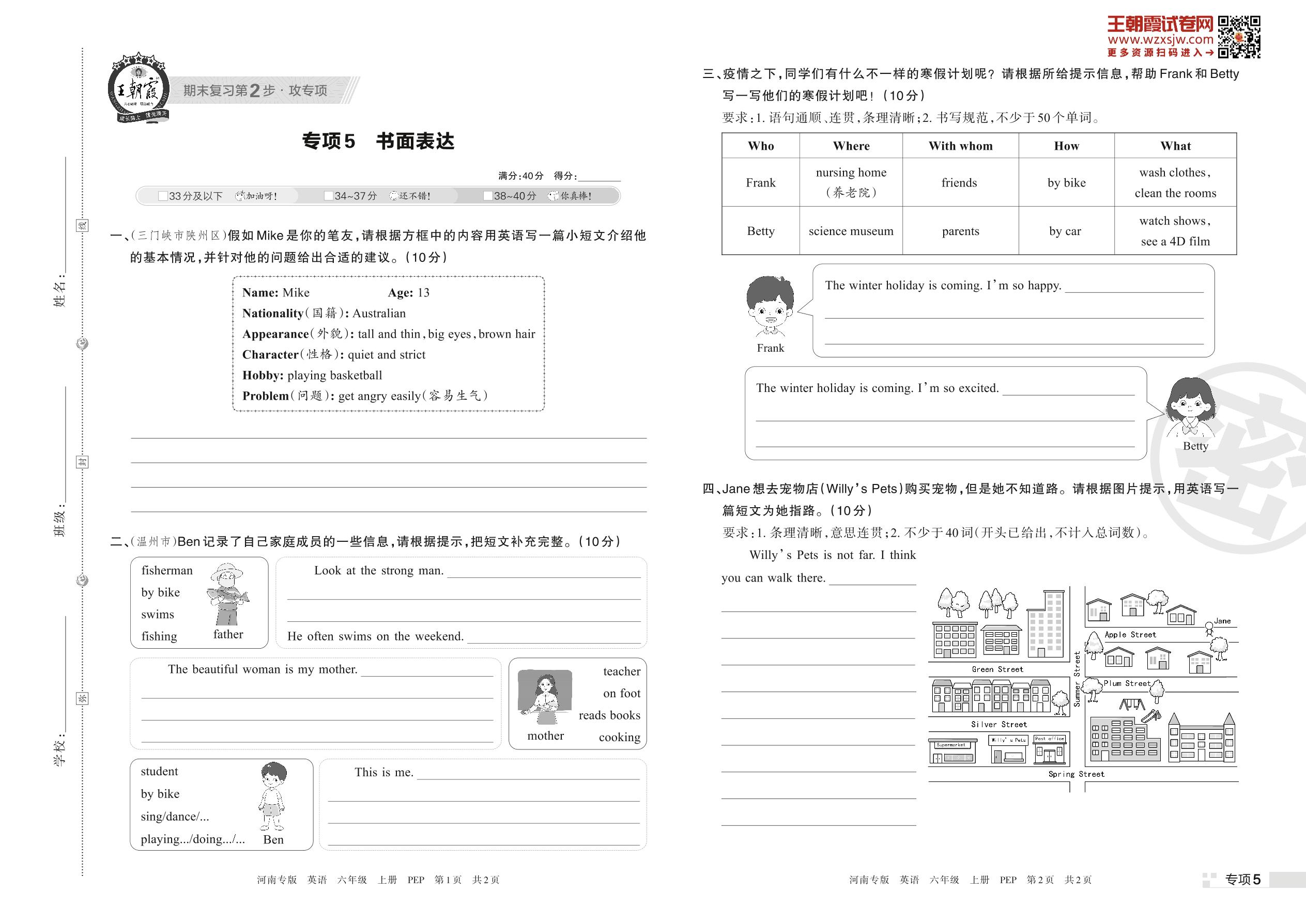 王朝霞期末专项卷——书面表达六年级上册英语(PEP版)【5】