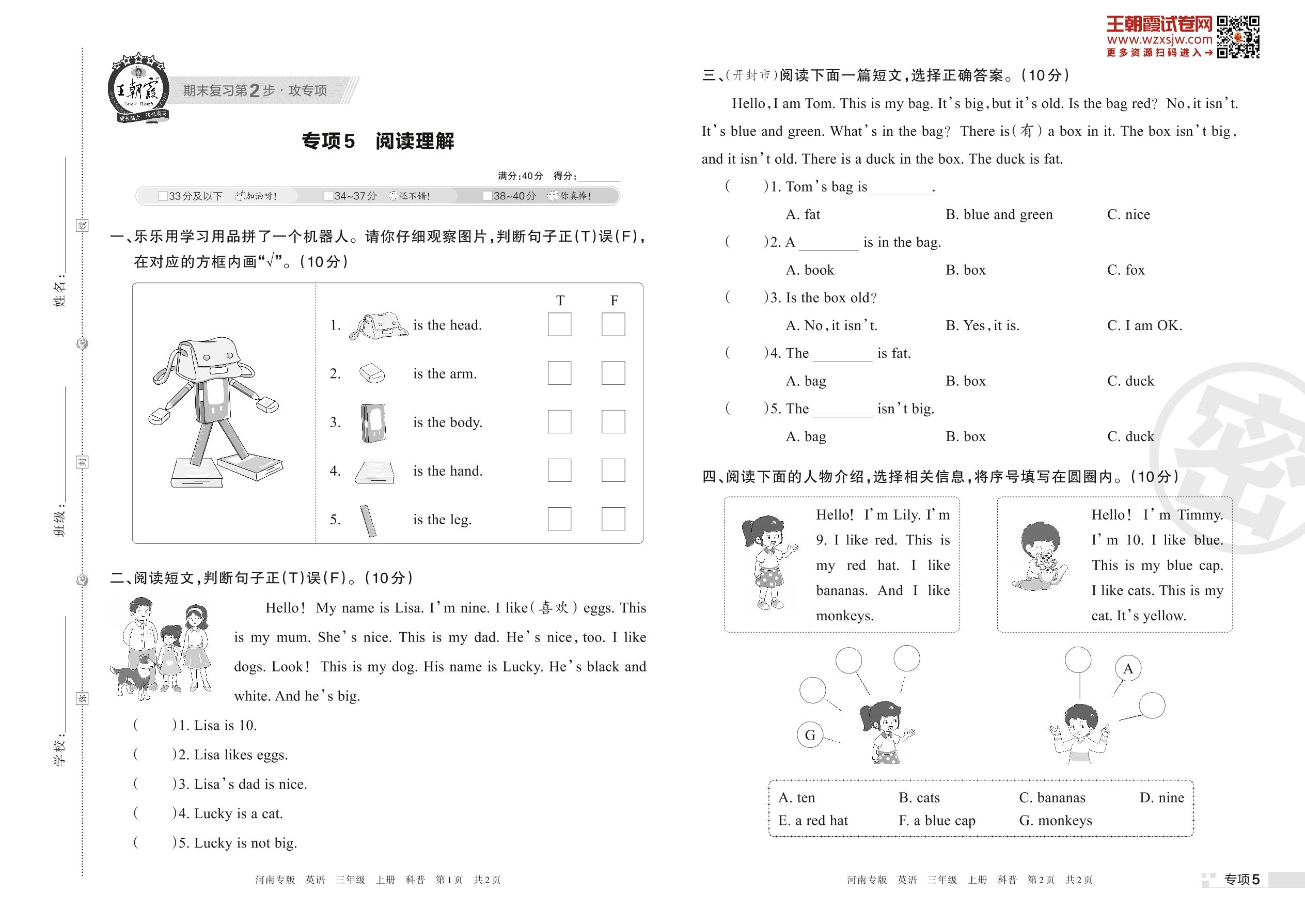 王朝霞期末专项卷——阅读理解三年级上册英语(科普版)_R221111142827530【5】