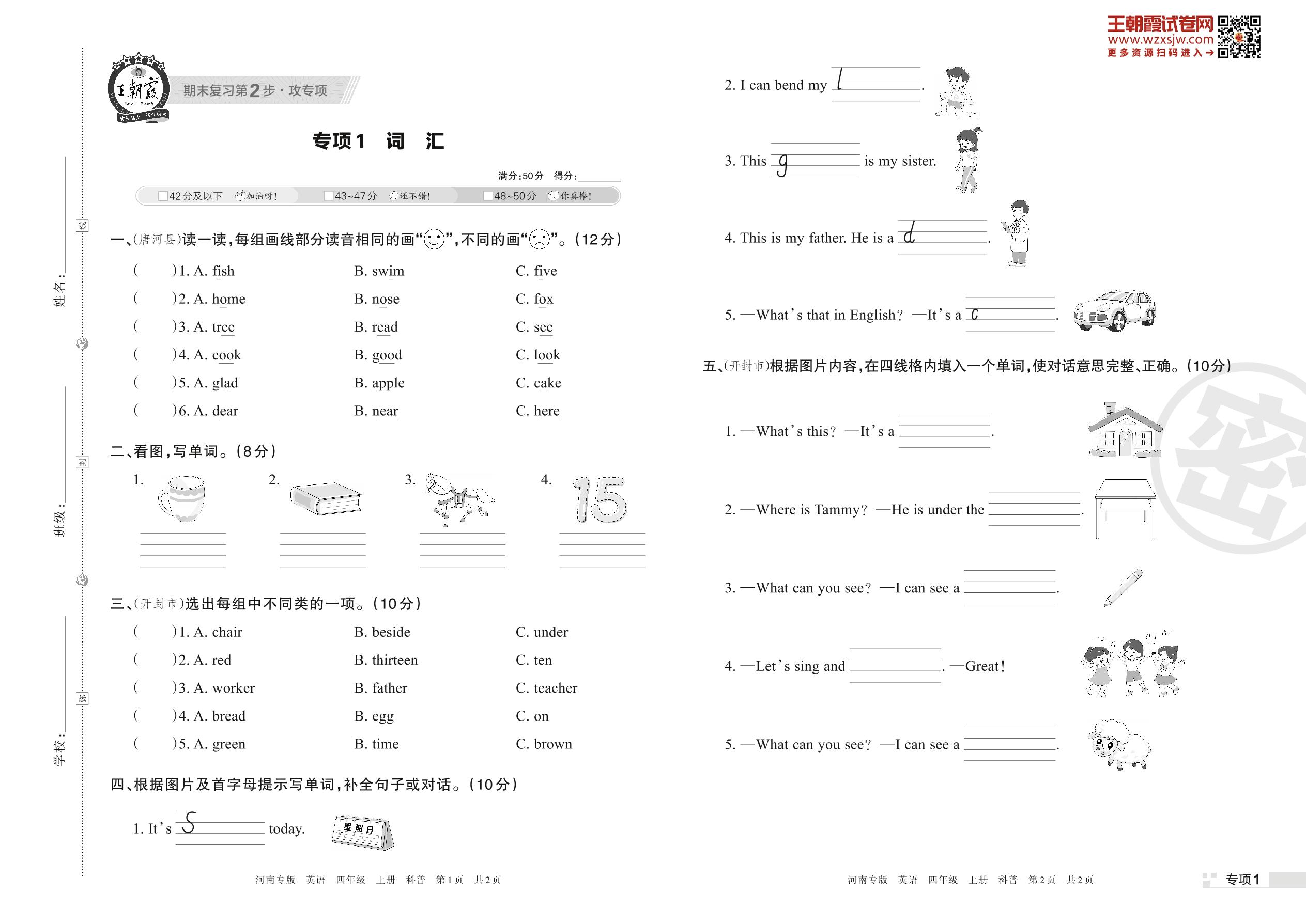 王朝霞期末专项卷——词汇四年级上册英语(科普版)_R221111143653730【1】