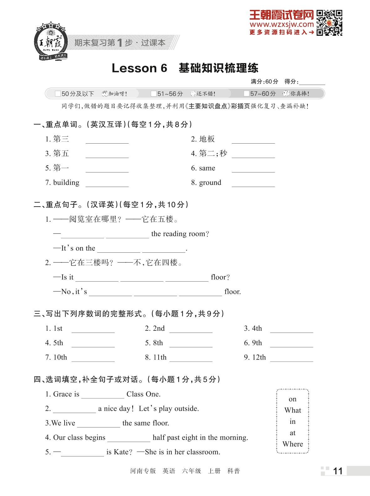 王朝霞期末过课本——Lesson 6 基础知识梳理练六年级上册英语(科普版)_R221111145356616