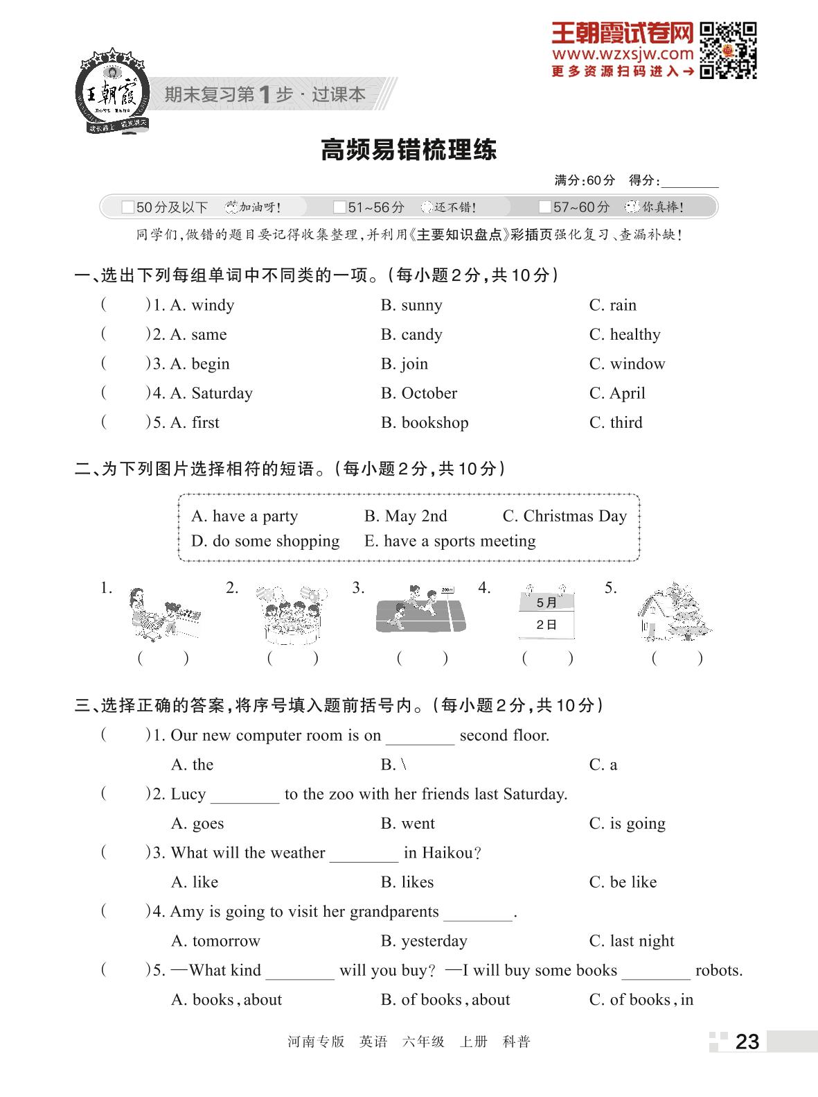 王朝霞期末过课本——高频易错梳理练六年级上册英语(科普版)_R221111145357547