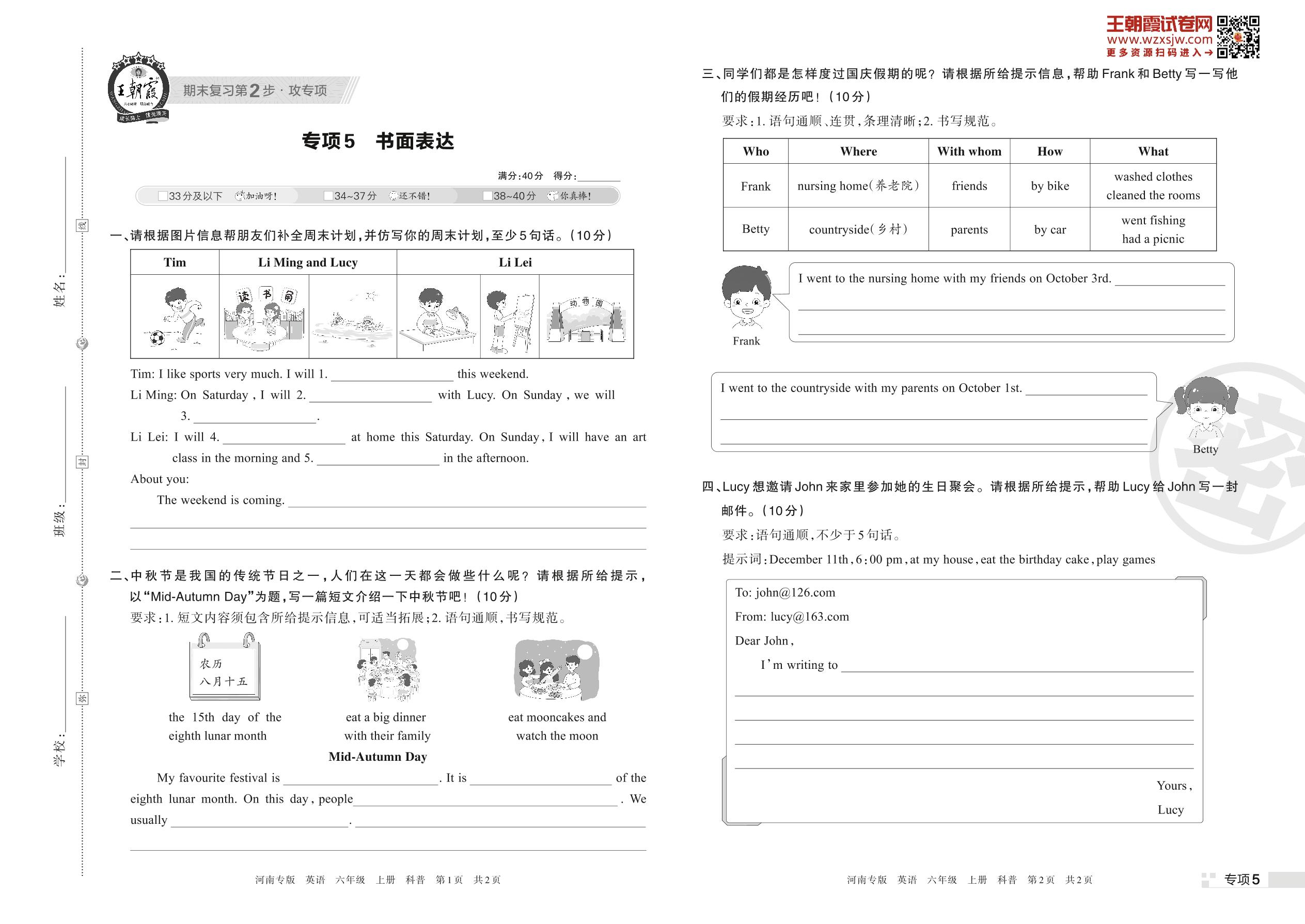 王朝霞期末专项卷——书面表达六年级上册英语(科普版)_R221111145358688【5】