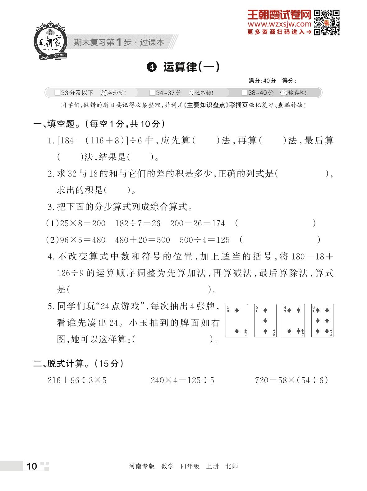 王朝霞期末过课本——4 运算律(一)四年级上册数学(北师版)