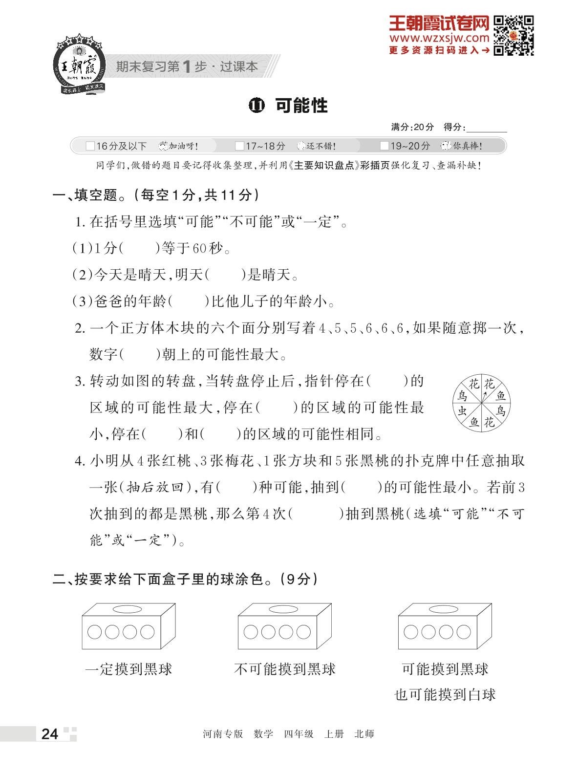 王朝霞期末过课本——11 可能性四年级上册数学(北师版)