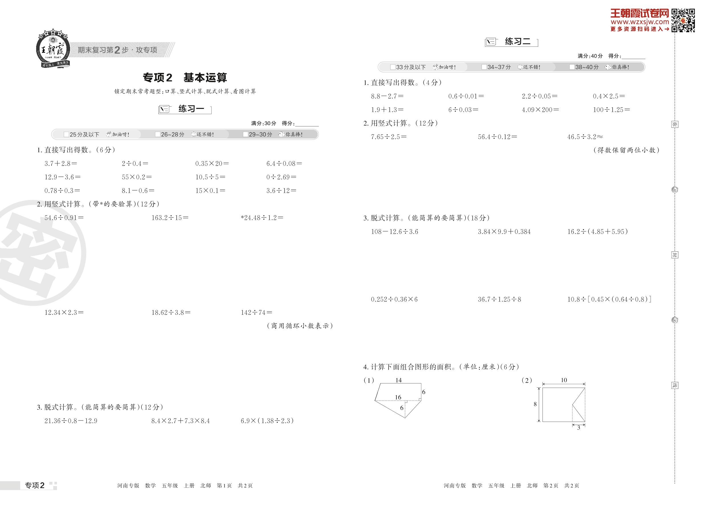 王朝霞期末专项卷——基本运算五年级上册数学(北师版)【2】