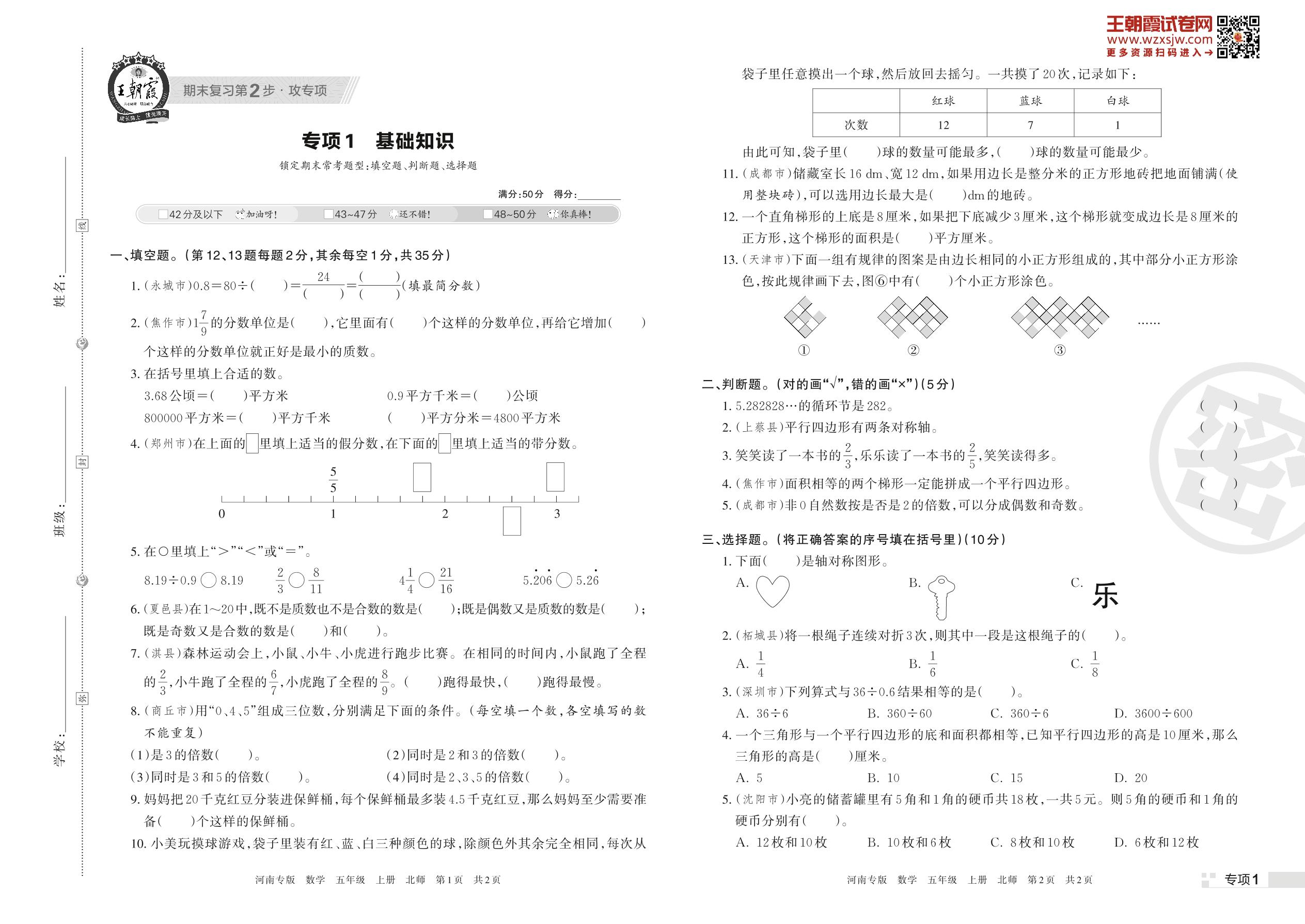 王朝霞期末专项卷——基础知识五年级上册数学(北师版)【1】