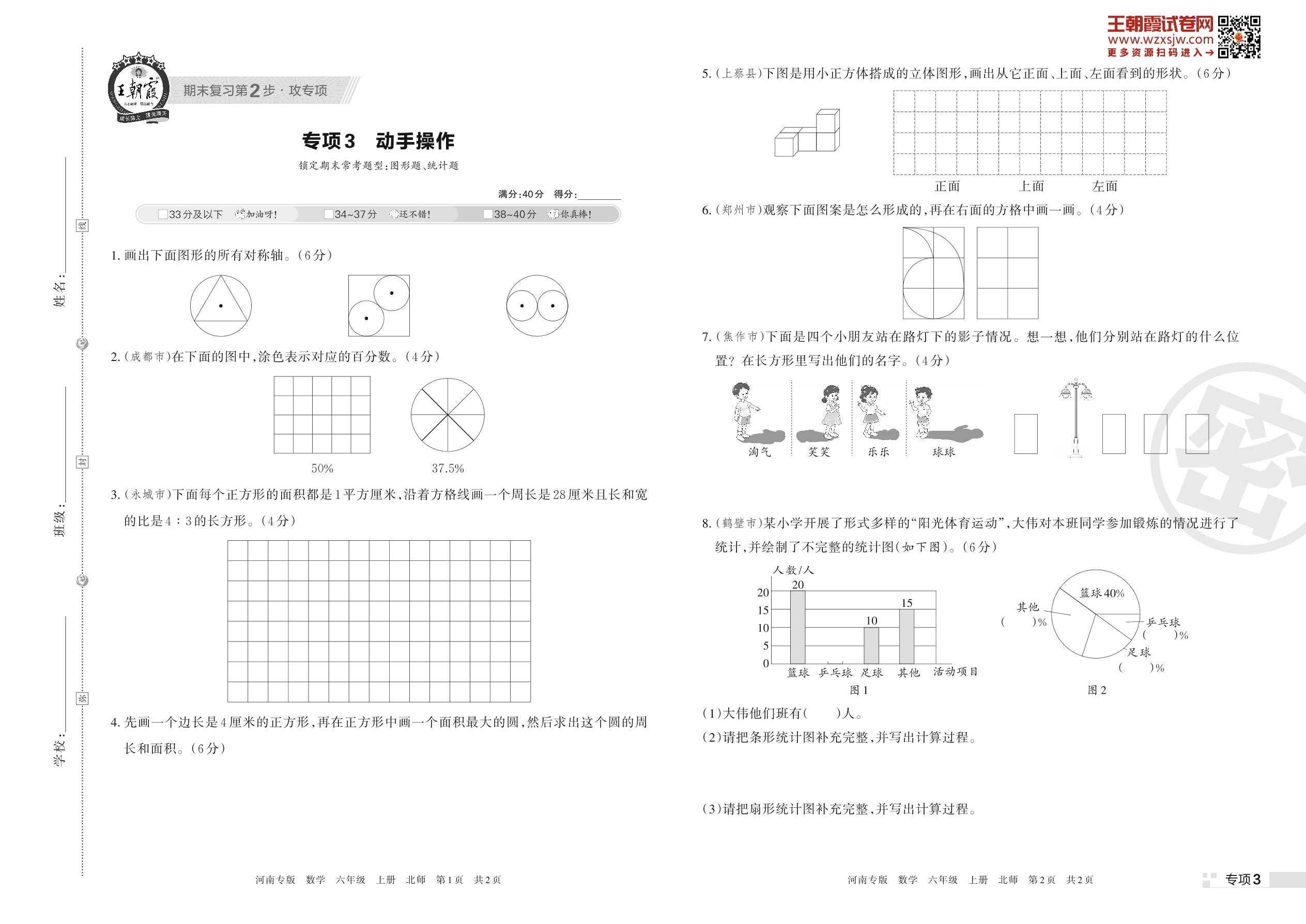 王朝霞期末专项卷——动手操作六年级上册数学(北师版)【3】