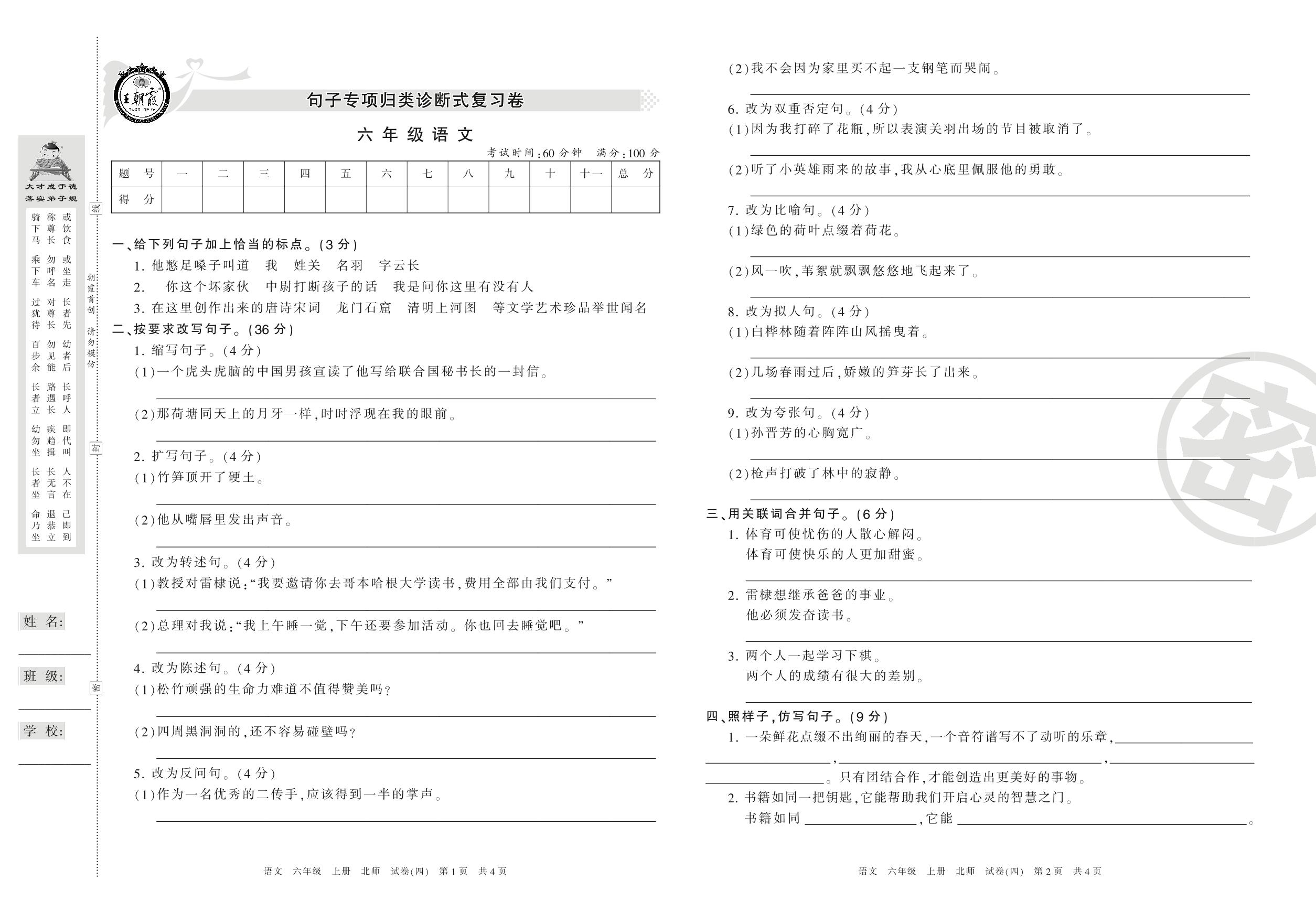王朝霞期末专项卷六年级上册语文(北师版)_R210802110241【4】