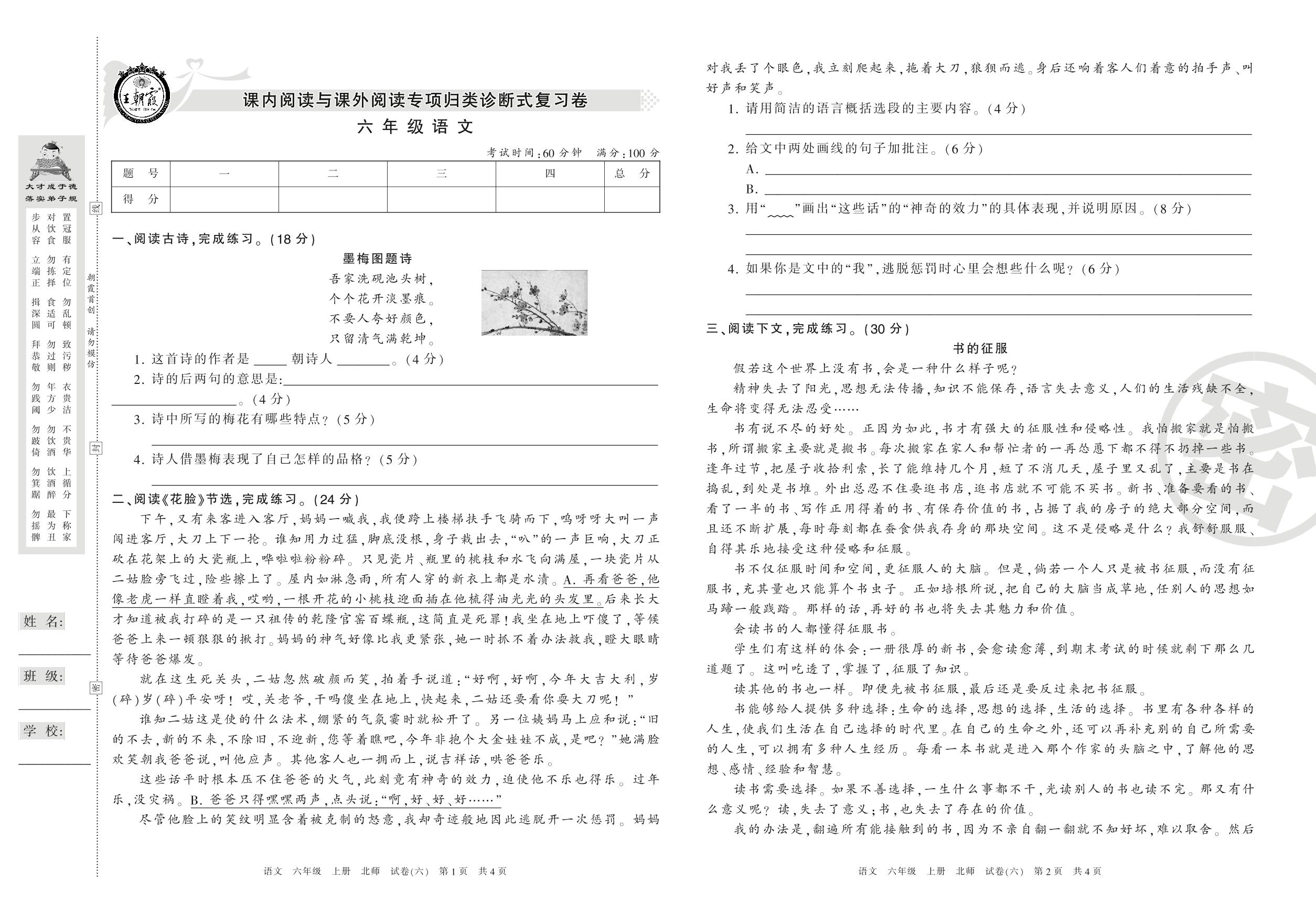 王朝霞期末专项卷六年级上册语文(北师版)【6】