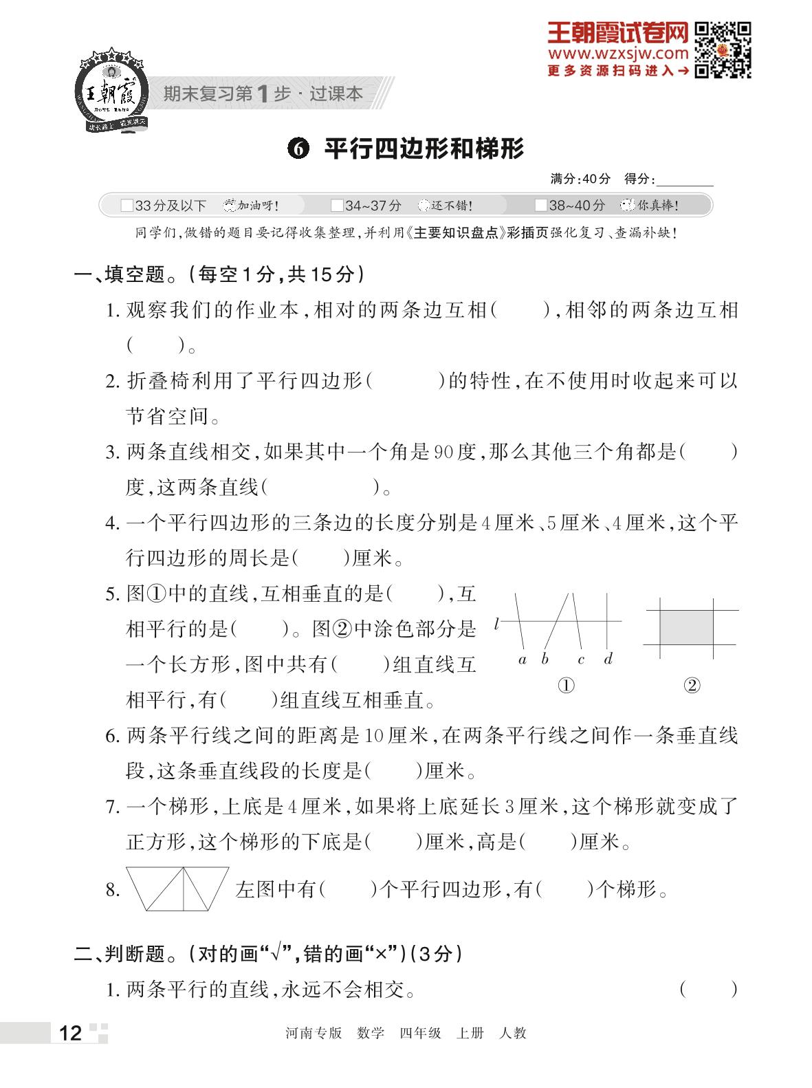 王朝霞期末过课本——6 平行四边形和梯形四年级上册数学(人教版)_R221111171801353